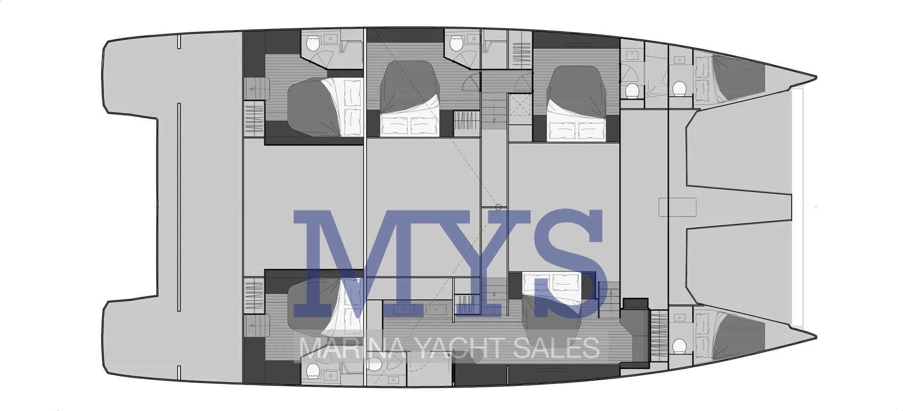 ✔ Layout: 5 Doppelkabinen mit eigenem Bad, großzügig dimensionierte Twin-Kabinen, alle mit eigenen Badezimmern und separaten Duschkabinen