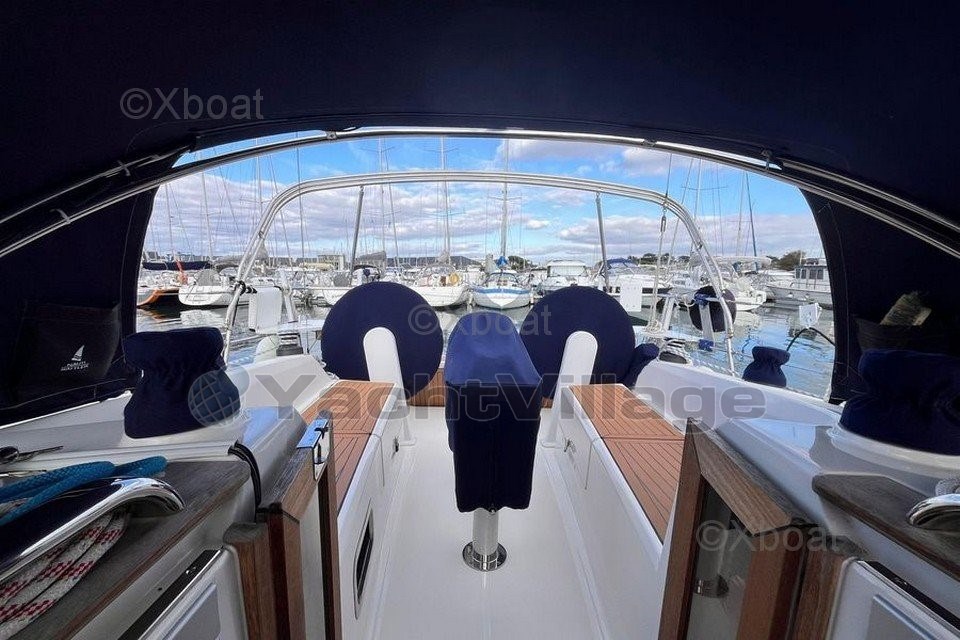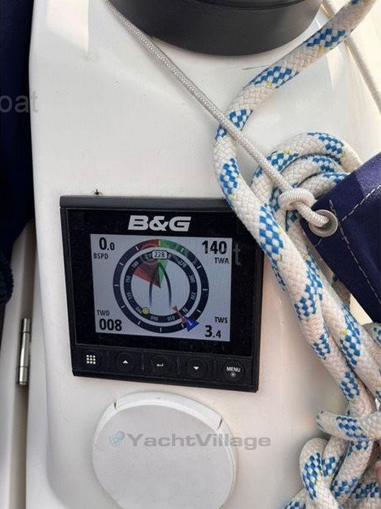 It is equipped with a B&G navigation center with AIS, furling sails, a bow thruster, solar panels, a WEEBASTO air heater, a dodger and a bimini.
