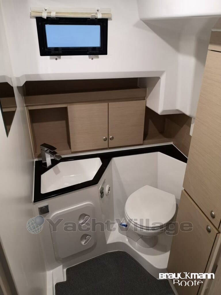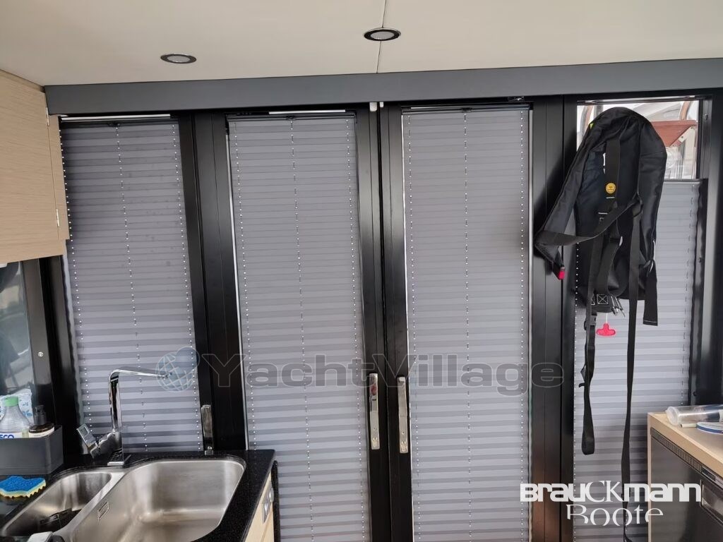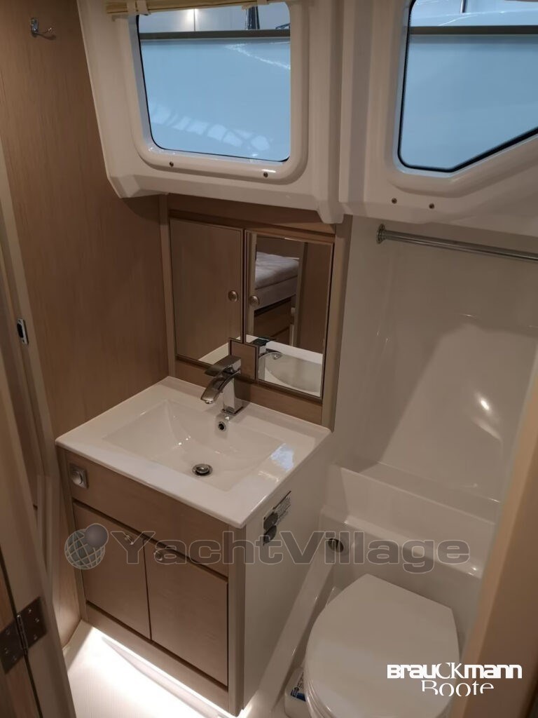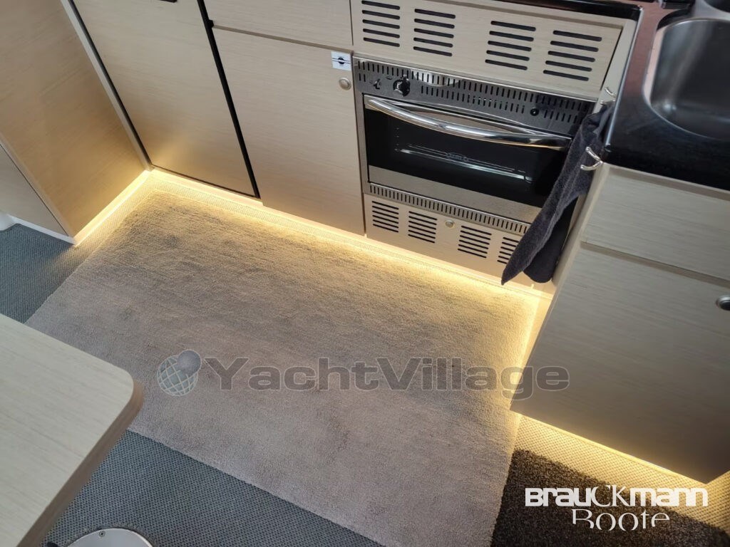 Zusätzliche Luken, Schiebefenster Backbord, blickdichte Vorhänge, Fliegengitter, Handläufe beidseitig im Niedergang, LED-Vollausstattung, Suchscheinwerfer mit Fernbedienung, zusätzliche Klampen, Scheuerleisten – alles durchdacht, alles hochwertig.