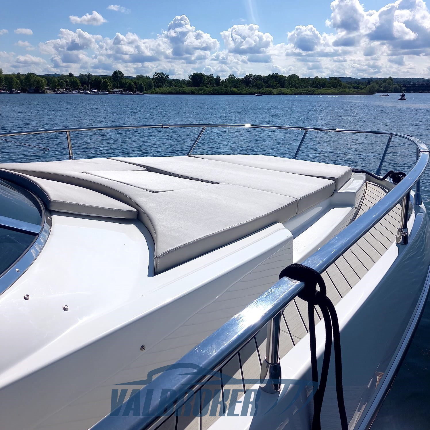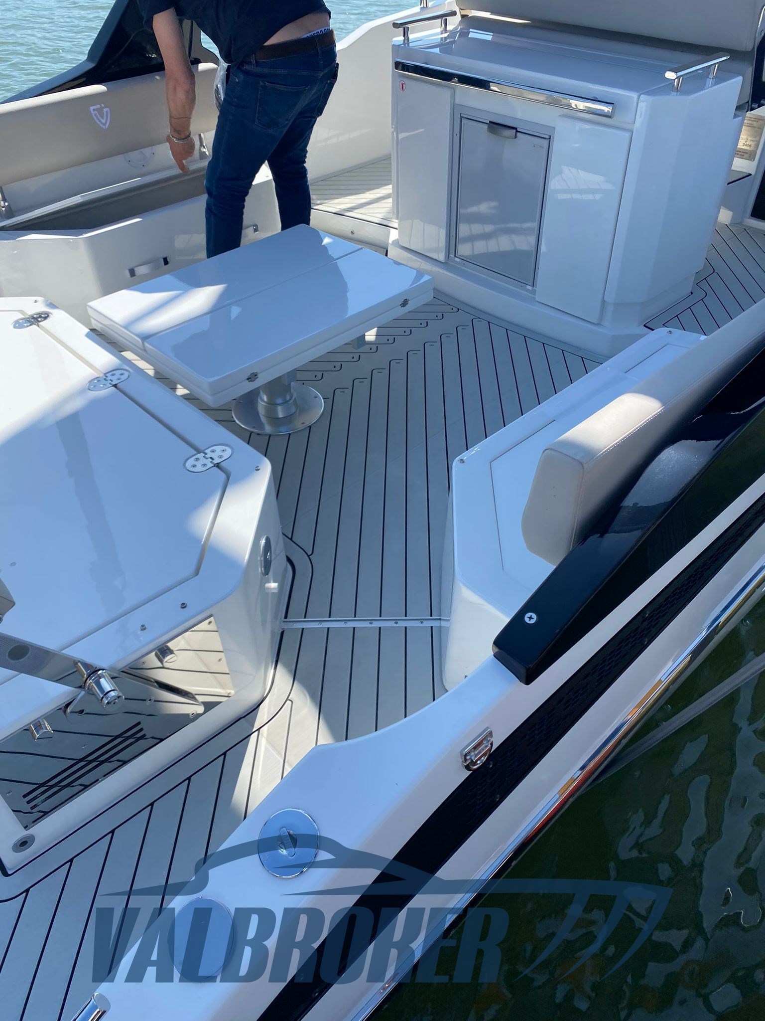 BOOT NICHT BEPLANKT. VOLL OPTIONAL: Yamaha Manövrier-Joystick, Bugstrahlruder, 7000 BTU Klimaanlage warm/kalt, Autopilot, XL-Sonnendeck achtern mit Gleitschienen und umklappbarer Rückenlehne, Außenkombüse, glänzend schwarzes T-TOP. Graues Meeresdeck mit schwarzen Cockpitfugen und Seitengängen. Es brennt nicht und muss nicht gewartet werden.