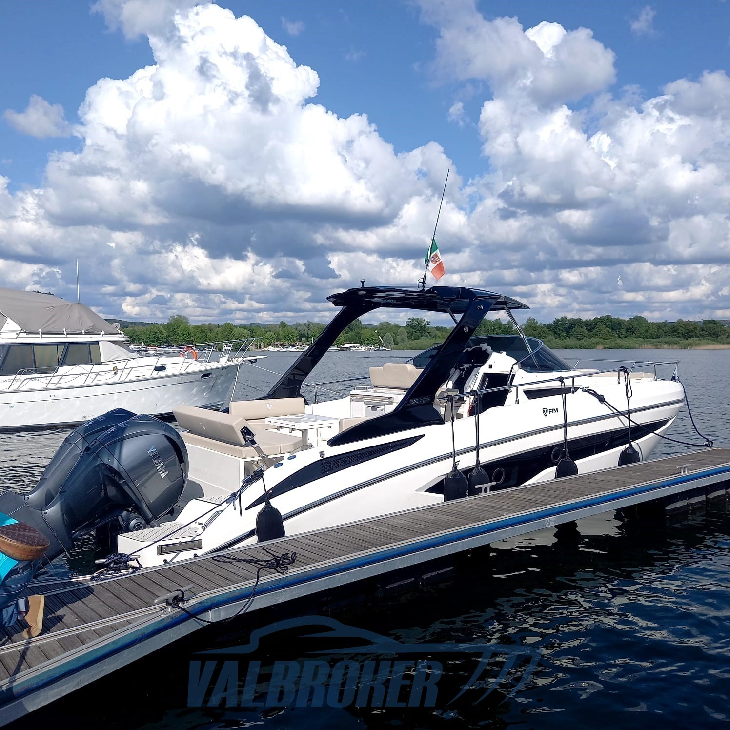 FIM REGINA 340, VORFÜHRBOOT, BEREIT ZUR AUSLIEFERUNG. Sichtbar im Showroom am Gardasee. 2x 300 PS AUSSENBORDER YAMAHA 4,2 L V6. BERGAMO SHIPYARD 100% MADE IN ITALY. WIRD FÜR DEN FOTOKATALOG VERWENDET.