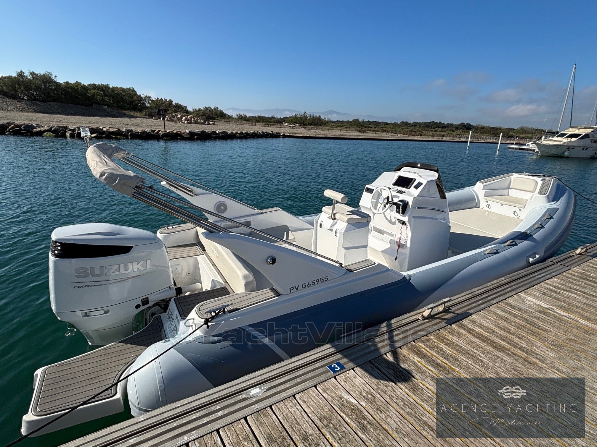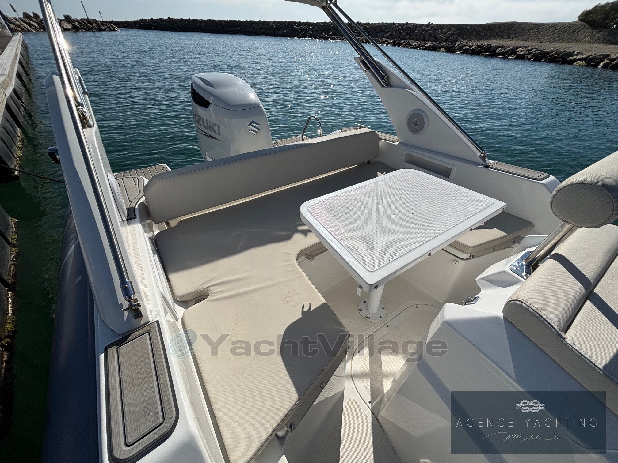 Versatile and efficient, this RIB offers comfortable and safe sailing, with plenty of space on board for outings with family or friends.
