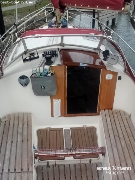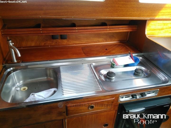 Slooptakelung, Spinnakereinrichtung, Spibaum, Rollfockeinrichtung, Alubaum, Salon, Bugkabine, Kocher Gas 2-flammig, Kühlschrank, Spüle, Kühlschrank el., WC manuell, WC manuell + Waschbecken, Waschbecken, Seperates Badezimmer, Echolot, , Sumlog, Kompass mit Tochter, UKW-Funk, Autopilot mit Repeater, Handfunkgerät, GPS, Echolot mit Tochter, Sumlog mit Tochter, Tiefenmesser, Geschwindigkeitsanzeige, Selbststeueranlage, Kompass,, Windmessanlage, Winterpersenning, Lazy Bag, Sprayhood, Cockpitverdeck, Landanschluss, Batterieladegerät, Suchscheinwerfer, Ankerkasten, Elektrische Lenzpumpe, Landanschluss 220 Volt, Batterie-Hauptschalter, Anker, Überwachungssystem, Batterie, Anker mit Kette, Lenzpumpe, Ruder innen, Decksluke, Seereling, Bilgepumpe, Feuerlöscher-Anlage, Radio mit Kassette, Unterwasseranstrich, Bugkorb, Heckkorb Niro, Bilgepumpe mechanisch, Heizung, Polsterbezüge, Cockpittisch, Badeleiter, Heckkorb, Druckwasseranlage, Bilgepumpe elektrisch, Feuerlöscher, Heizung Warmluft, Radio, Polsterbezüge Stoff, Lautsprecher im Cockpit, inkl. Trailer ungebremst,