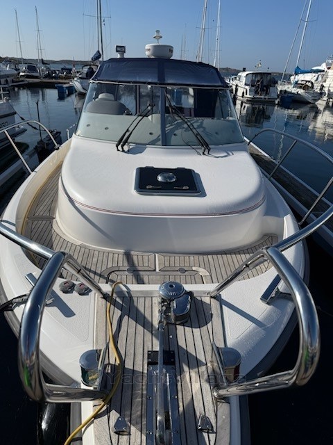 Dieses Exemplar ist mit einem Volvo Penta D6-350 mit DPH-Antrieb ausgestattet, was im Vergleich zu Booten mit ausschließlich D4-Motoren eine völlig andere Leistung, Fahreigenschaften und ein deutlich verbessertes Fahrerlebnis bietet.