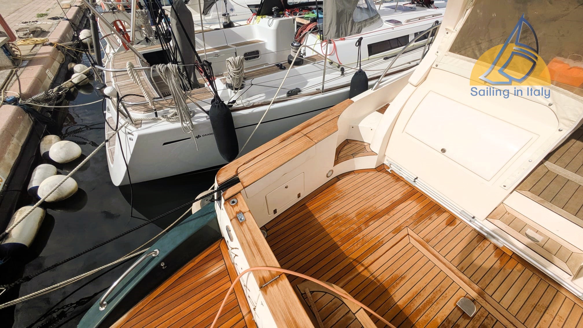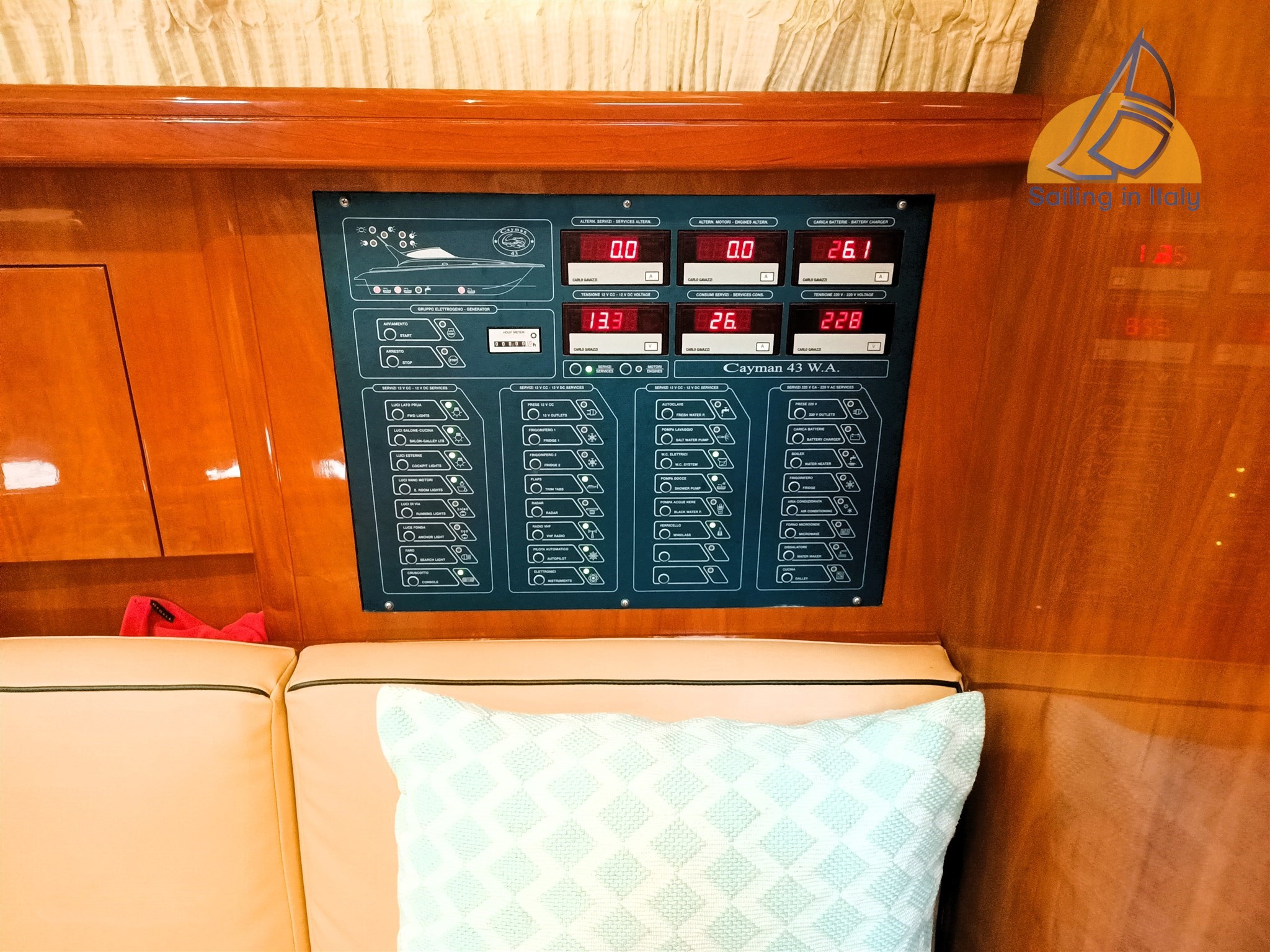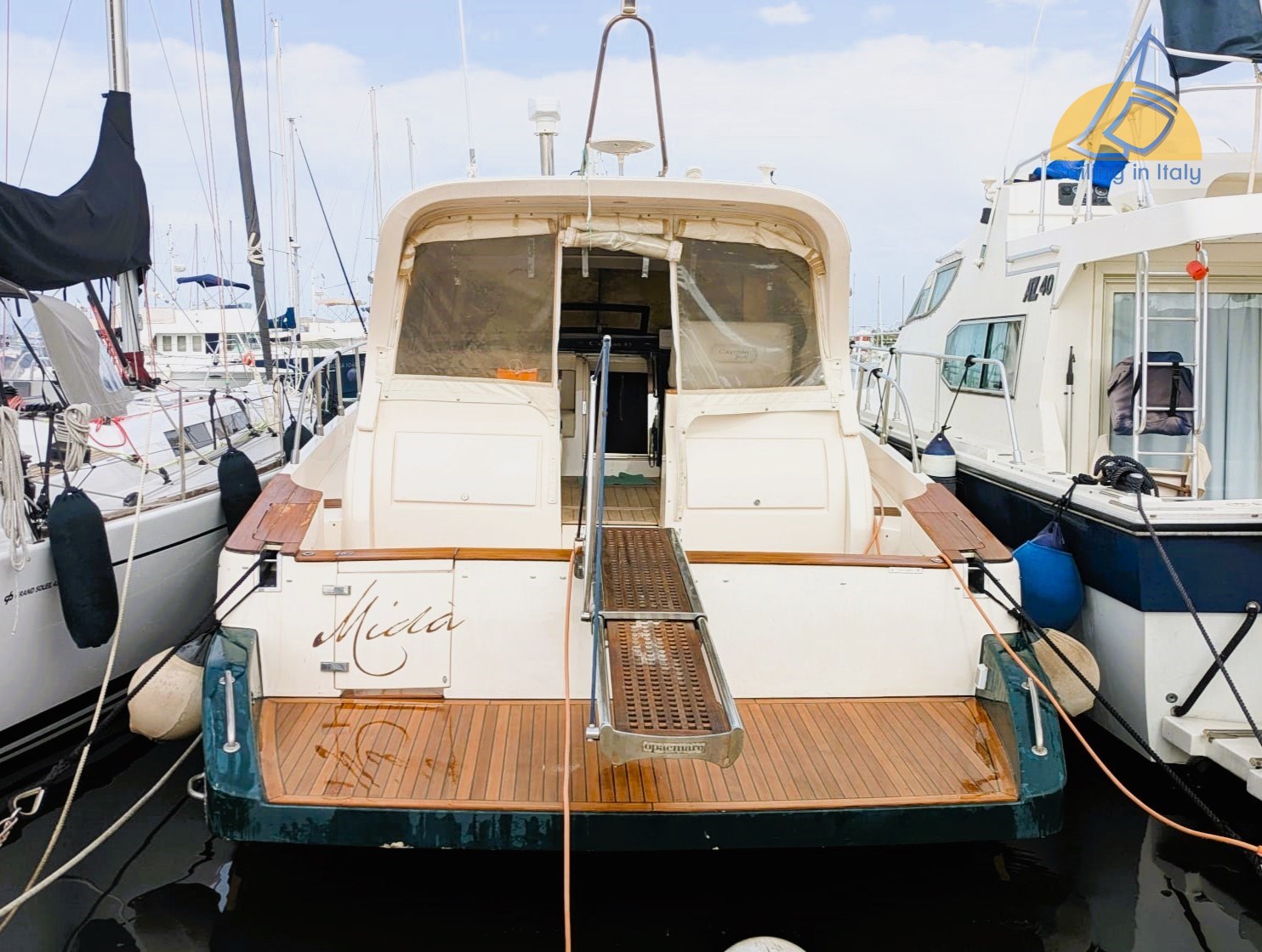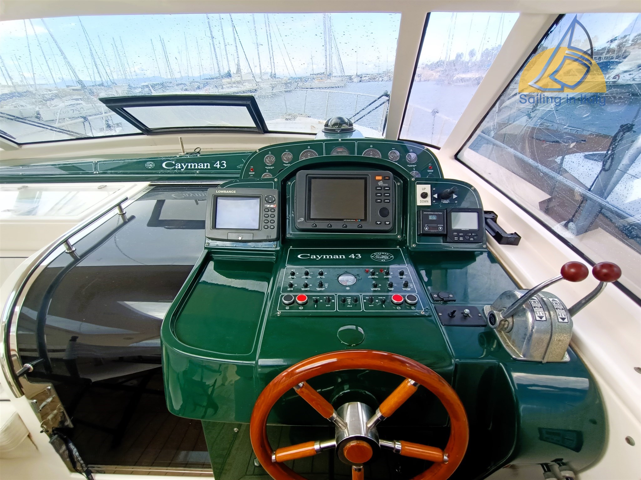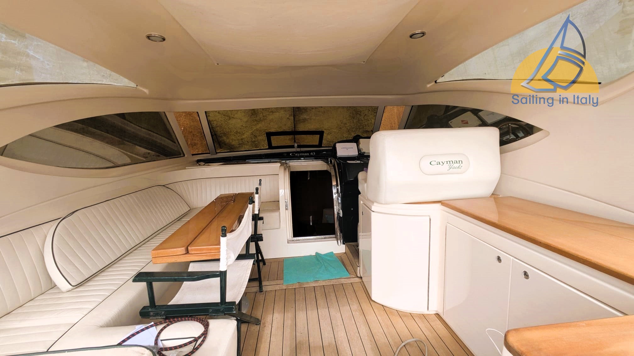 Cayman 43, WA – 2002; Motor: 2 x Caterpillar 460 PS – 870 Stunden ; Generator: Mase 3 kW; Kompletter Teaküberholung