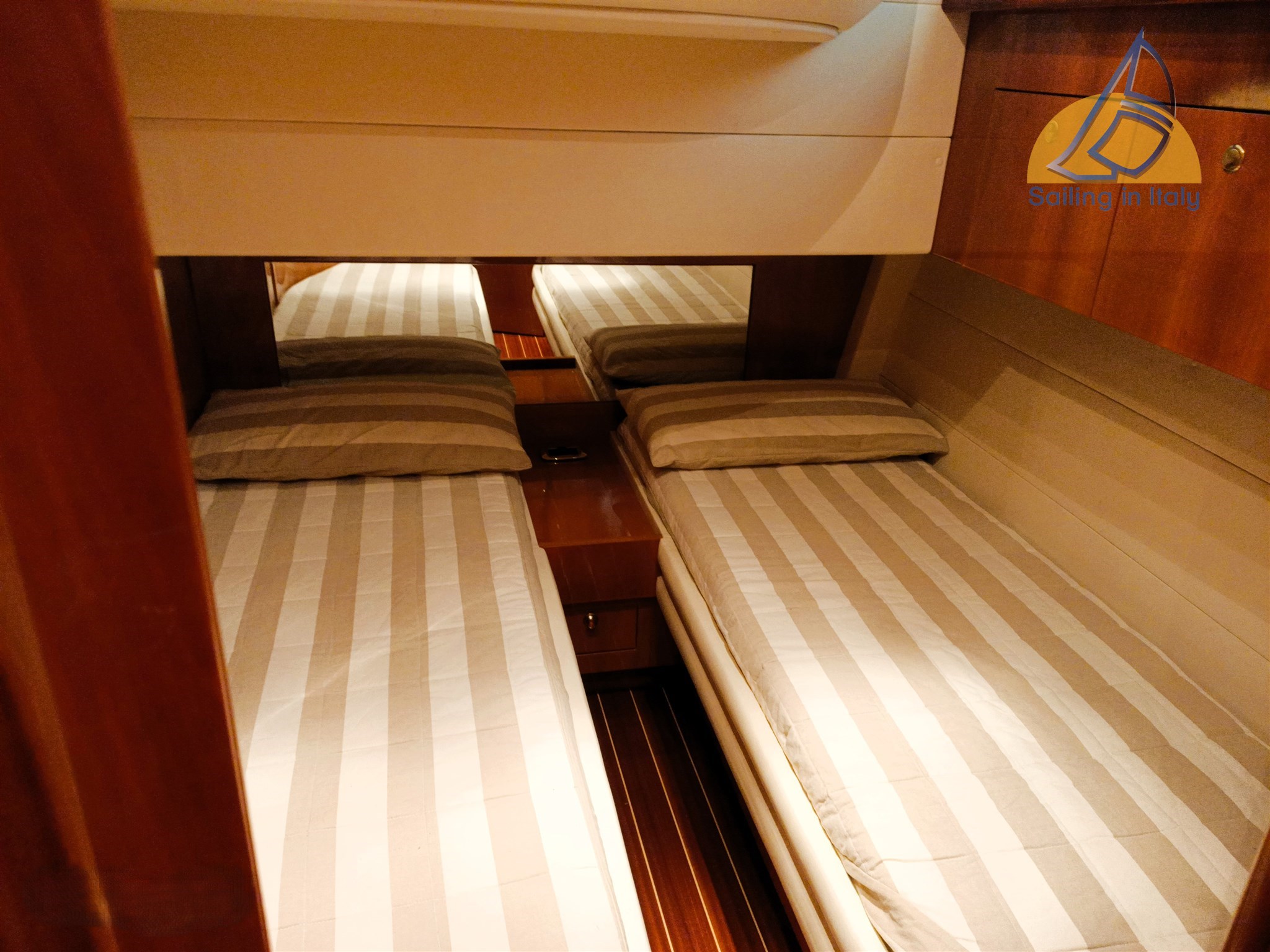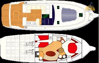 Motoren: 2 x Caterpillar 460 PS (870 H); Wellenleitung – Direktübertragung; Bugtriebwerk, Autopilot, GPS/Lowrance-Plotter, VHF, Tiefensounder; Klimaanlage, Wechselrichter, Grill, Boiler, Warmwasser; Wassermacher, Mase-Generator 3 kW, hydraulischer Gangway, neues Teakholz (Überholung 2024), Teakholz-Cockpit mit Tisch, großes Bug- und Heck-Sonnendeck; Voll ausgestattete Küche mit Induktionskof, Innen- und Außenkühlschrank; 2 Kabinen (Master + Gäste), 2 Badezimmer mit separater Dusche; Hardtop, verstellbarer Scheinwerfer, übergroße Heckplattform