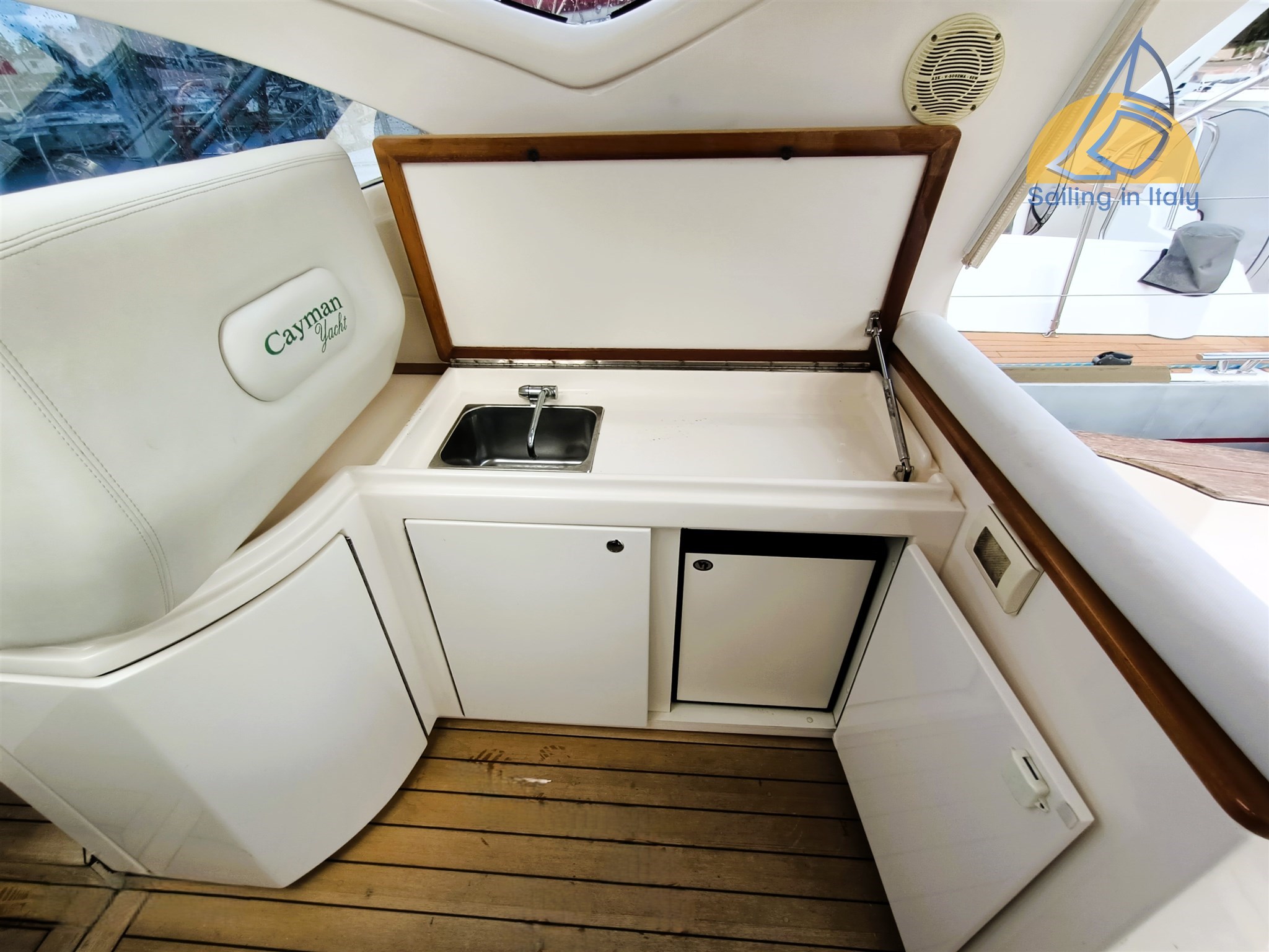 Mit ihren zeitlosen Linien und der Solidität, die die Cayman-Werft auszeichnet, bietet diese offene Yacht beim Segeln Komfort und Sicherheit – perfekt für Familienfahrten und Tagesausflüge mit Freunden. Das Boot ist in gutem allgemeinen Zustand.