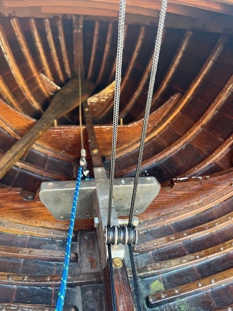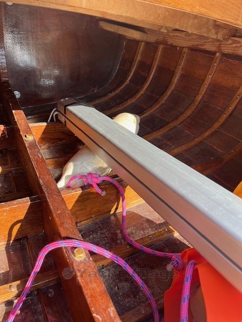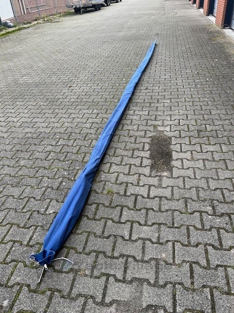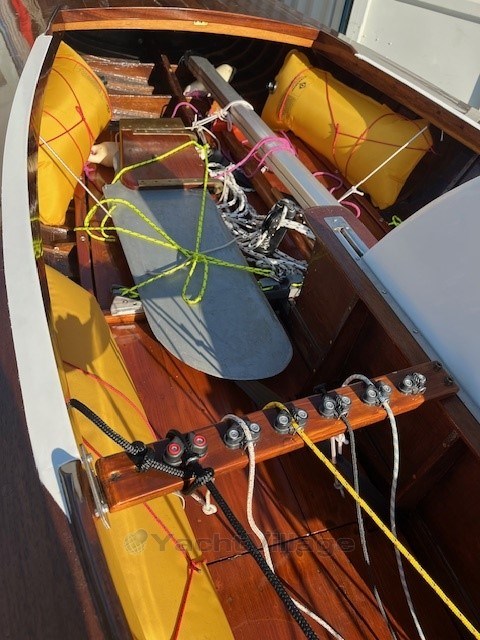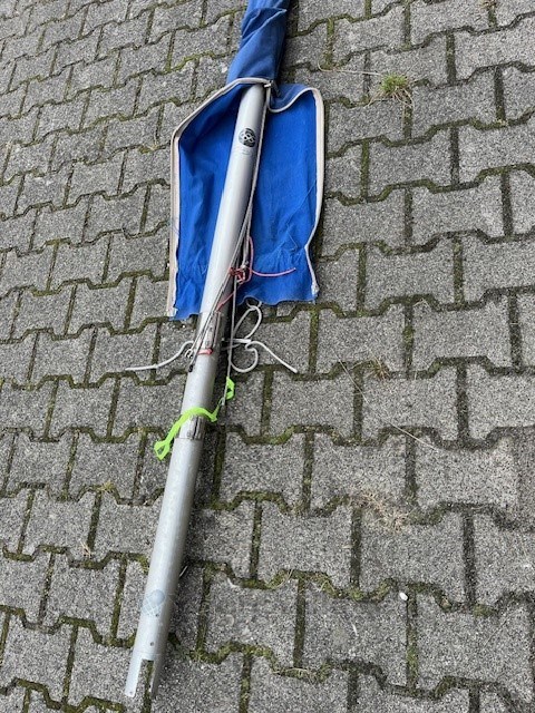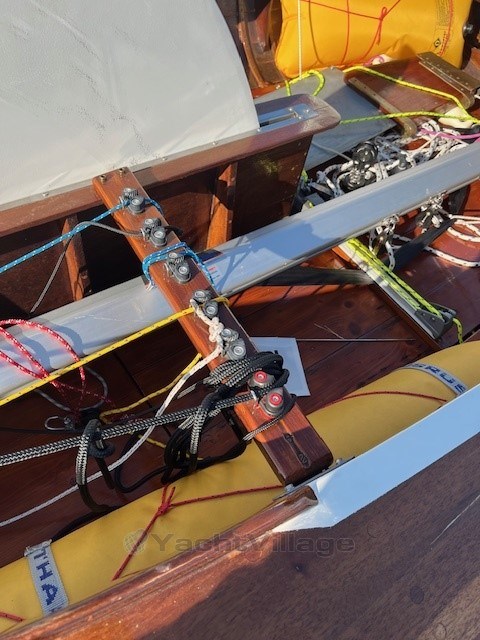 Die Olympia-Jol ist segelfertig mit einem Zertifikat und 5 Segeln und einem guten Needlespar Mast.