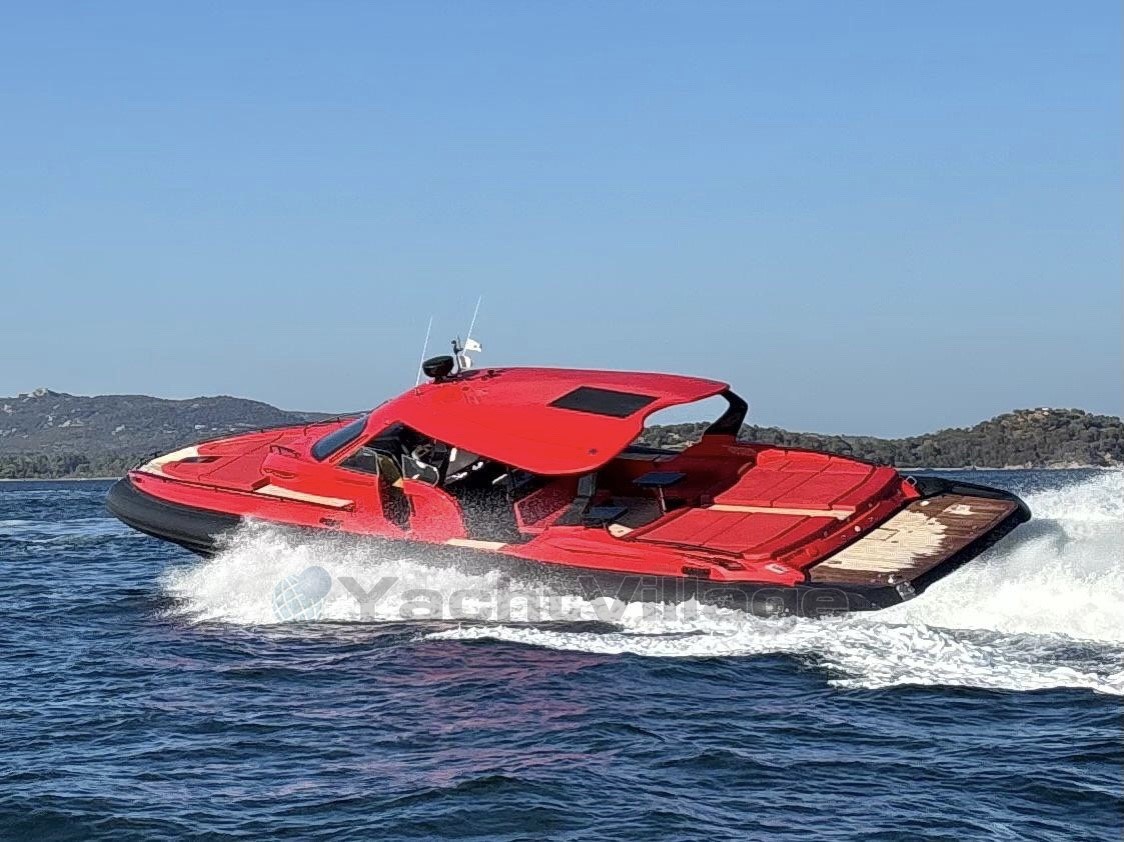 SACS STRIDER 19 from 2015, a RIB distinguished by its powerful blend of performance, comfort, and reliability. Thanks to its twin 1150 hp Caterpillar engines paired with perfectly serviced Arneson transmissions, it offers powerful acceleration and a remarkable top speed. The new bow thruster, new propellers, redone upholstery, and completely refurbished engine room electrical system are testament to rigorous technical maintenance. It also features generous sunbathing areas, a fitted cockpit, two cabins, and a bathroom. Its Raymarine electronics are complete.