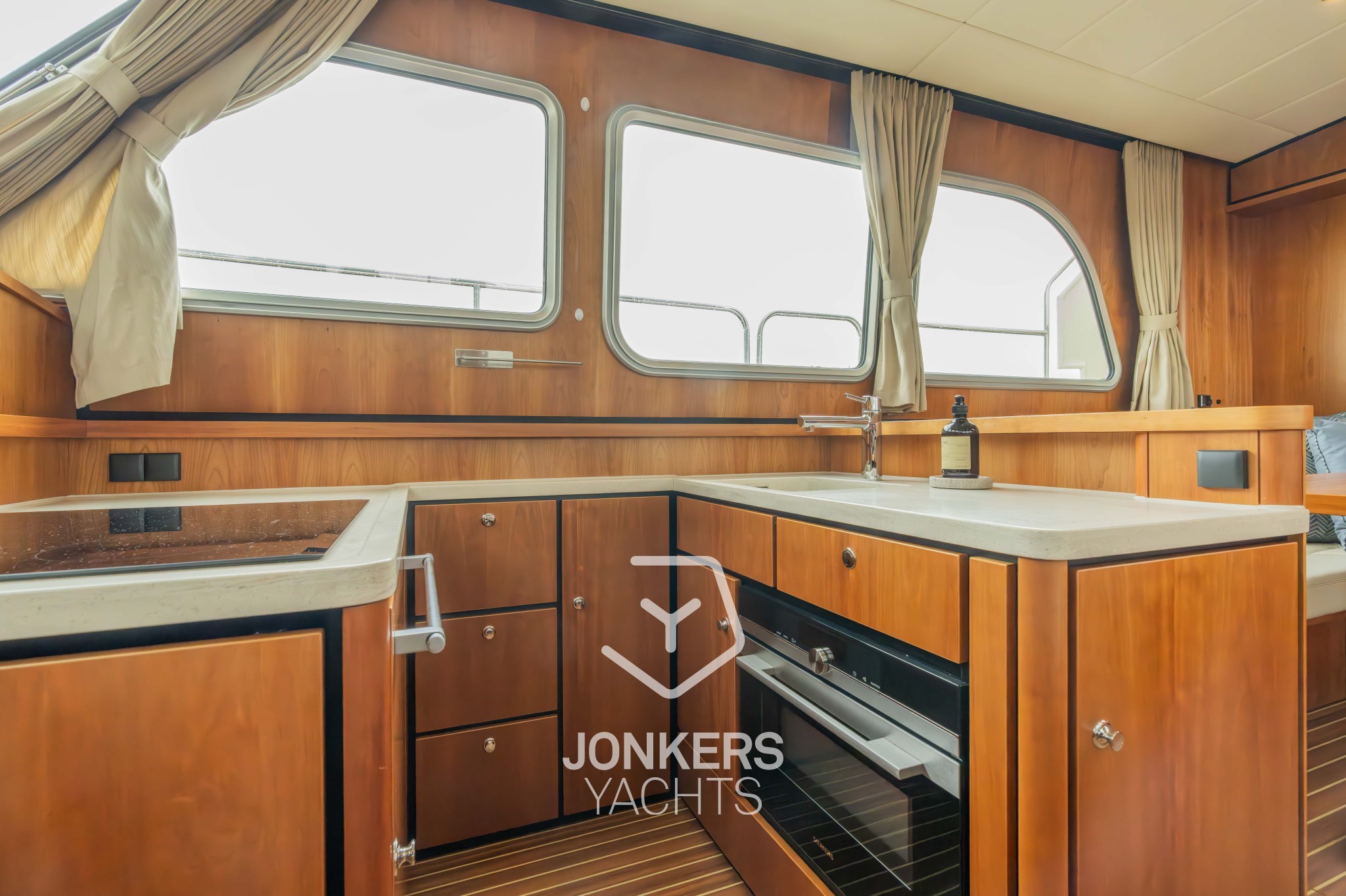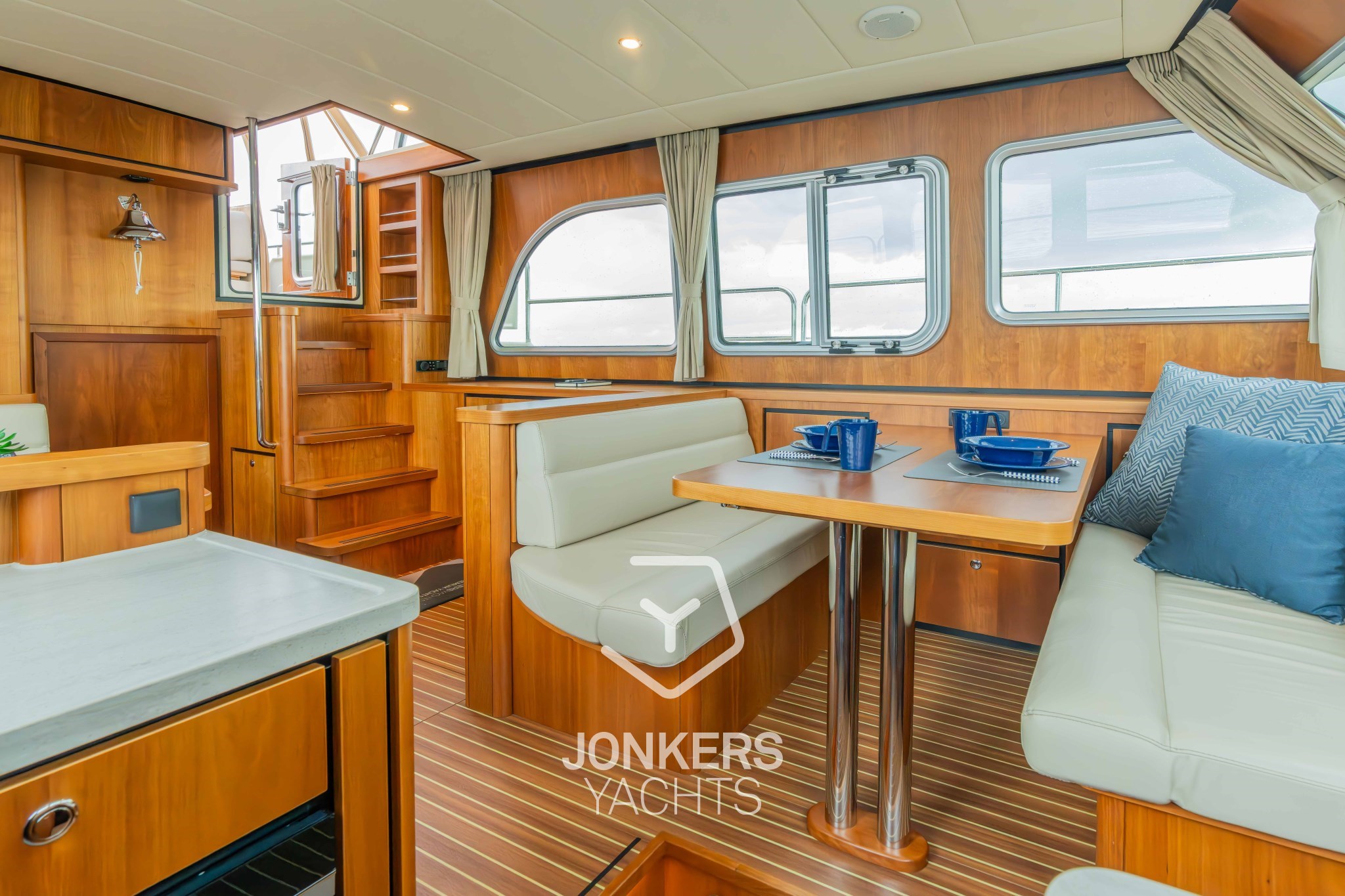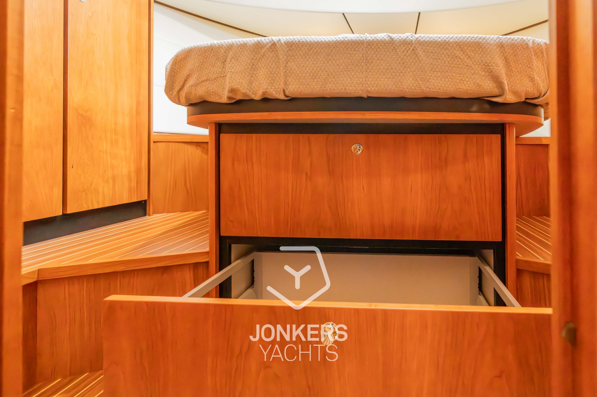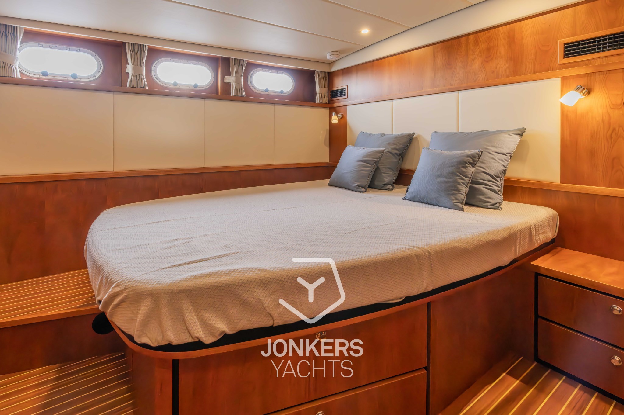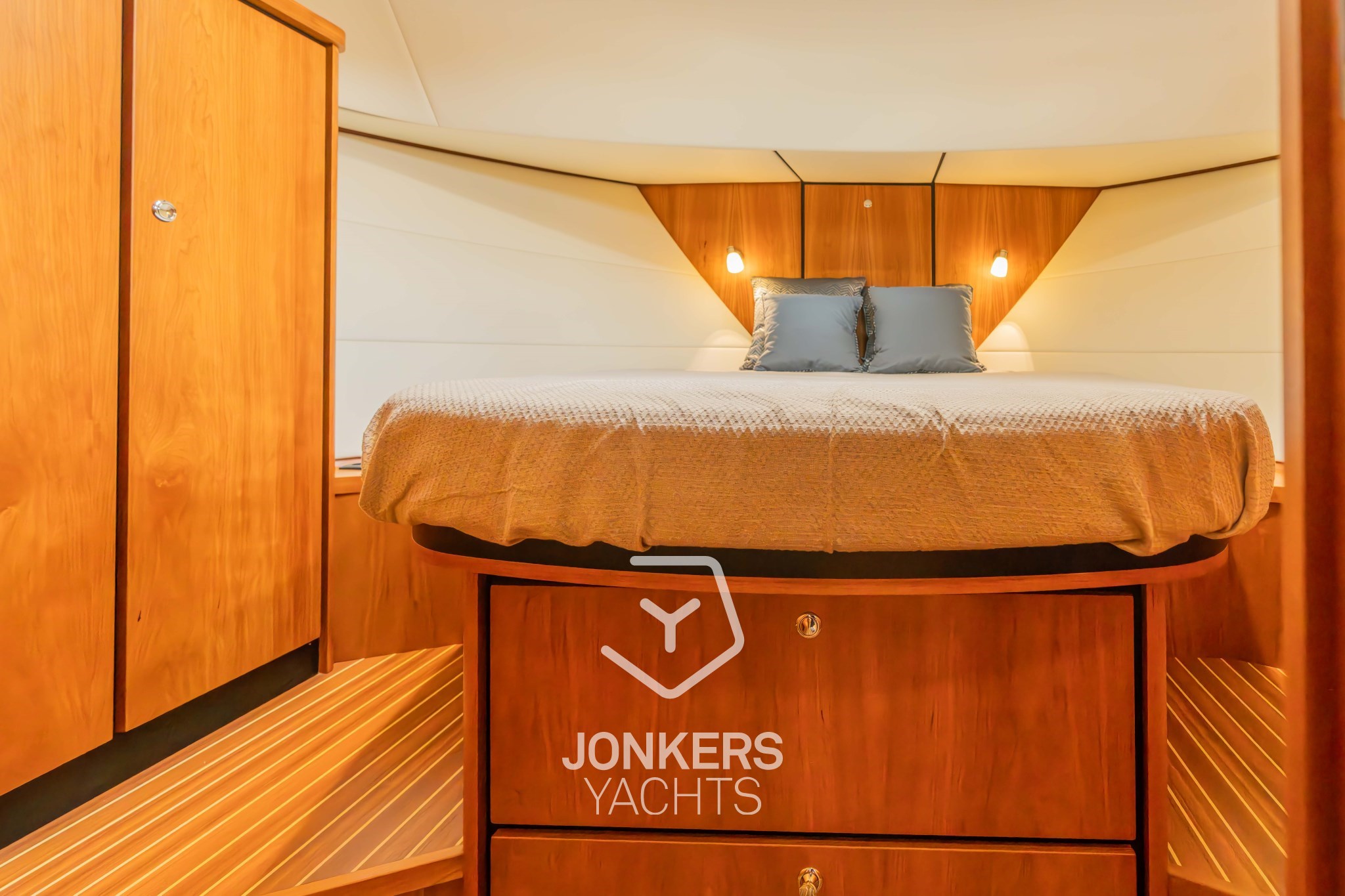 * Original LINSSEN Teakdeck auf dem Vordeck und den Gangways.