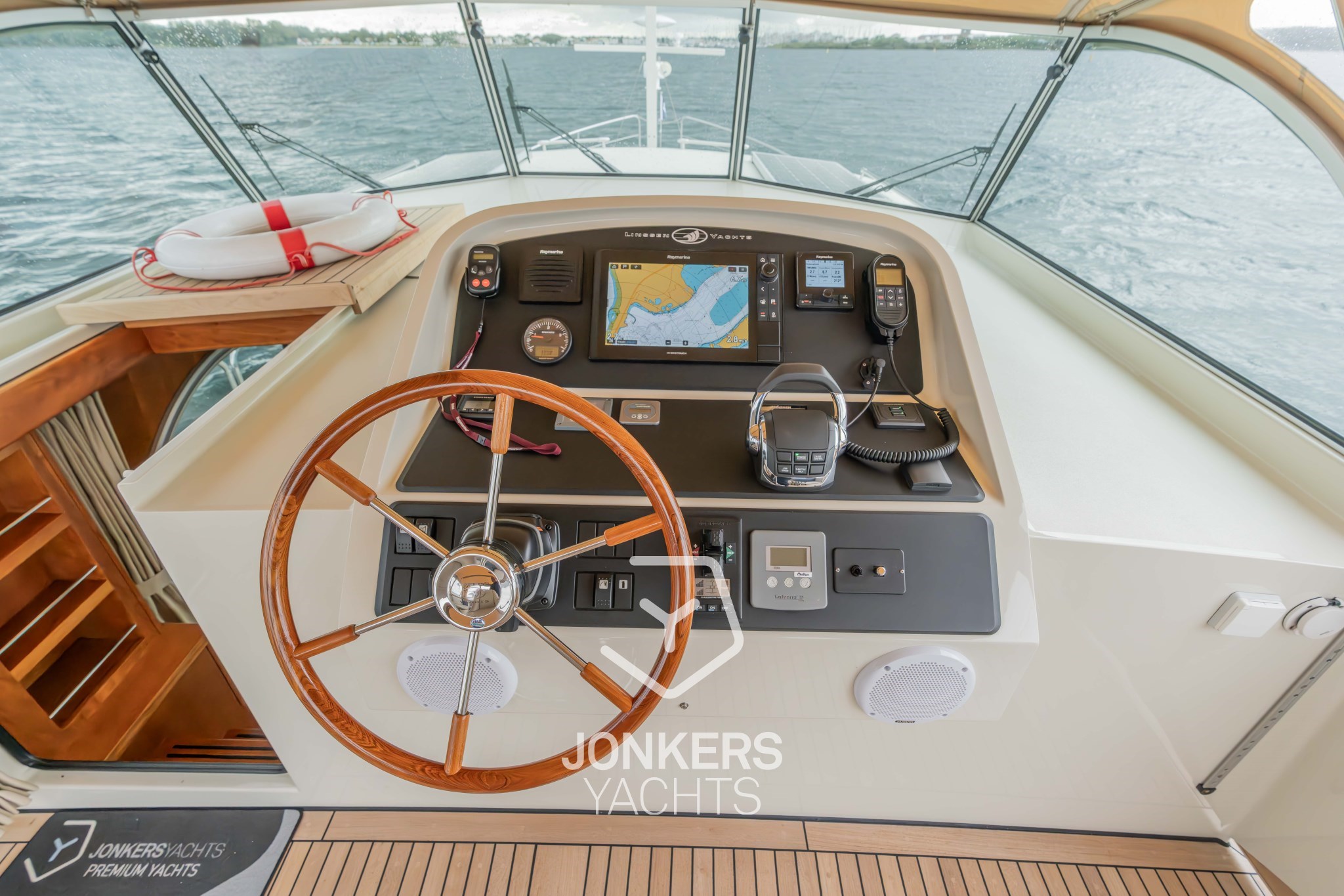 * Zusätzliche 230-V-Steckdose am Steuerstand auf der Steuerbordseite, spritzwassergeschützt.