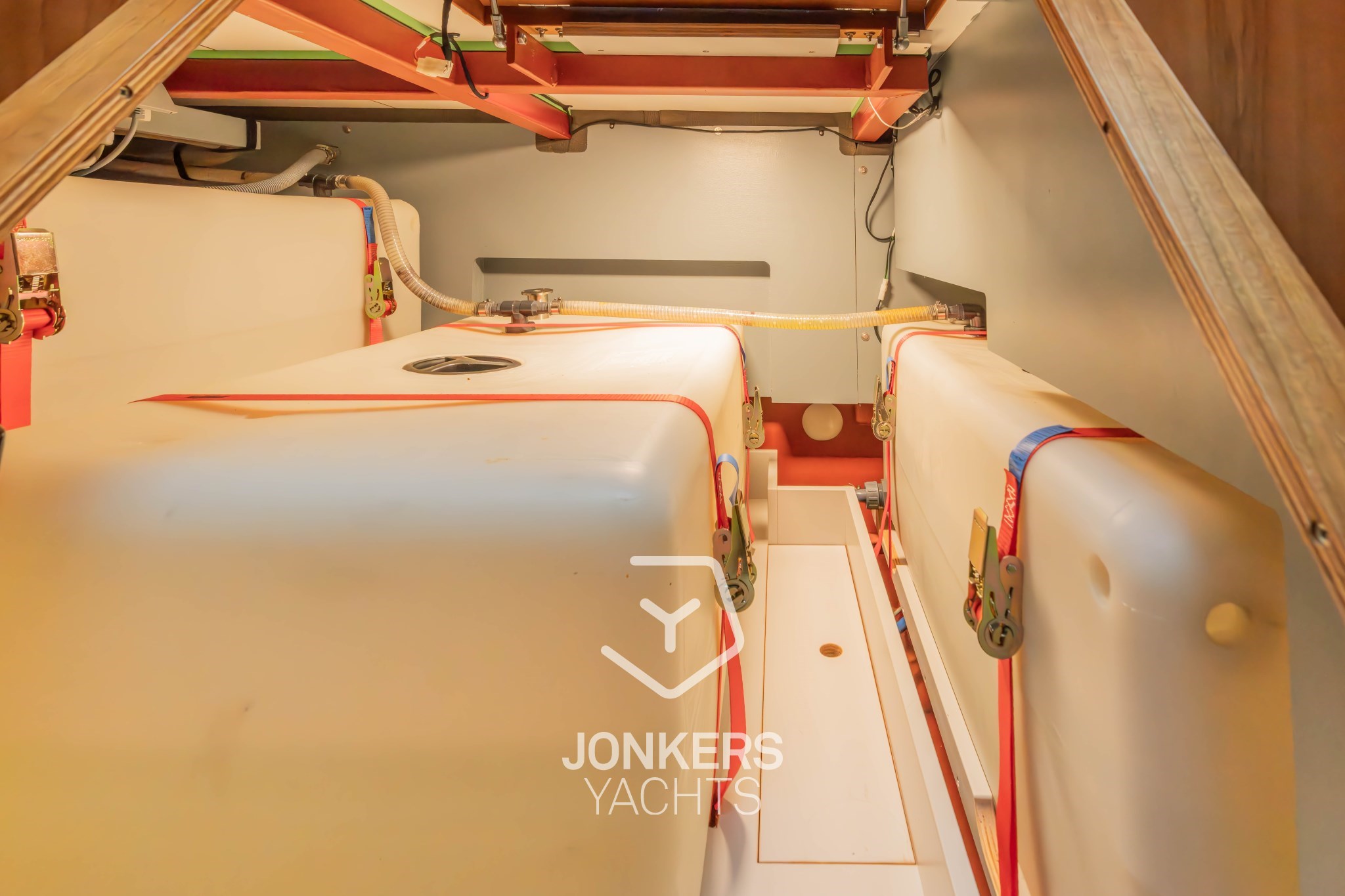 * Zusätzlich 1x Vollkunststoff-Bordwassertanks mit Inspektions-/Reinigungsöffnung ± 220 l. Über diesem Tank ist ein Boden angebracht, um Stauraum zu schaffen.