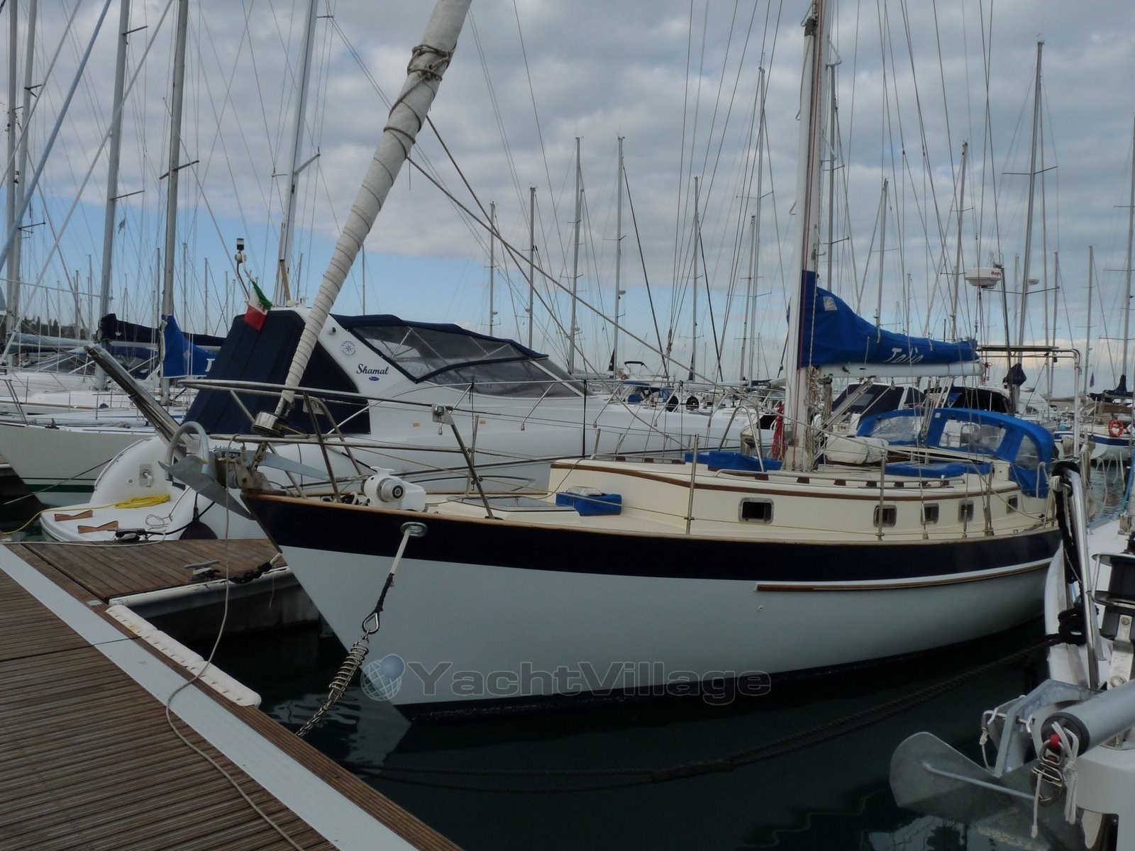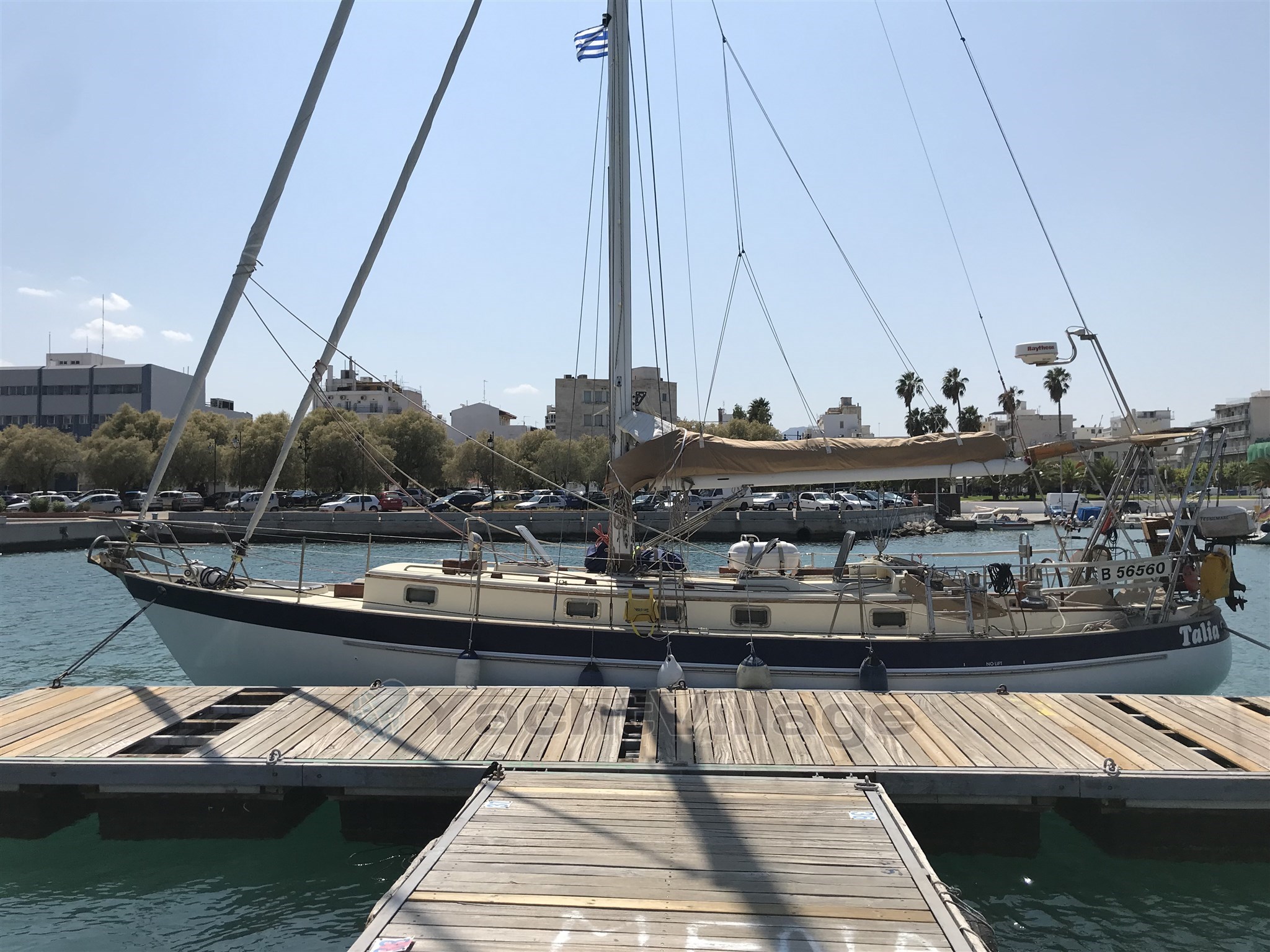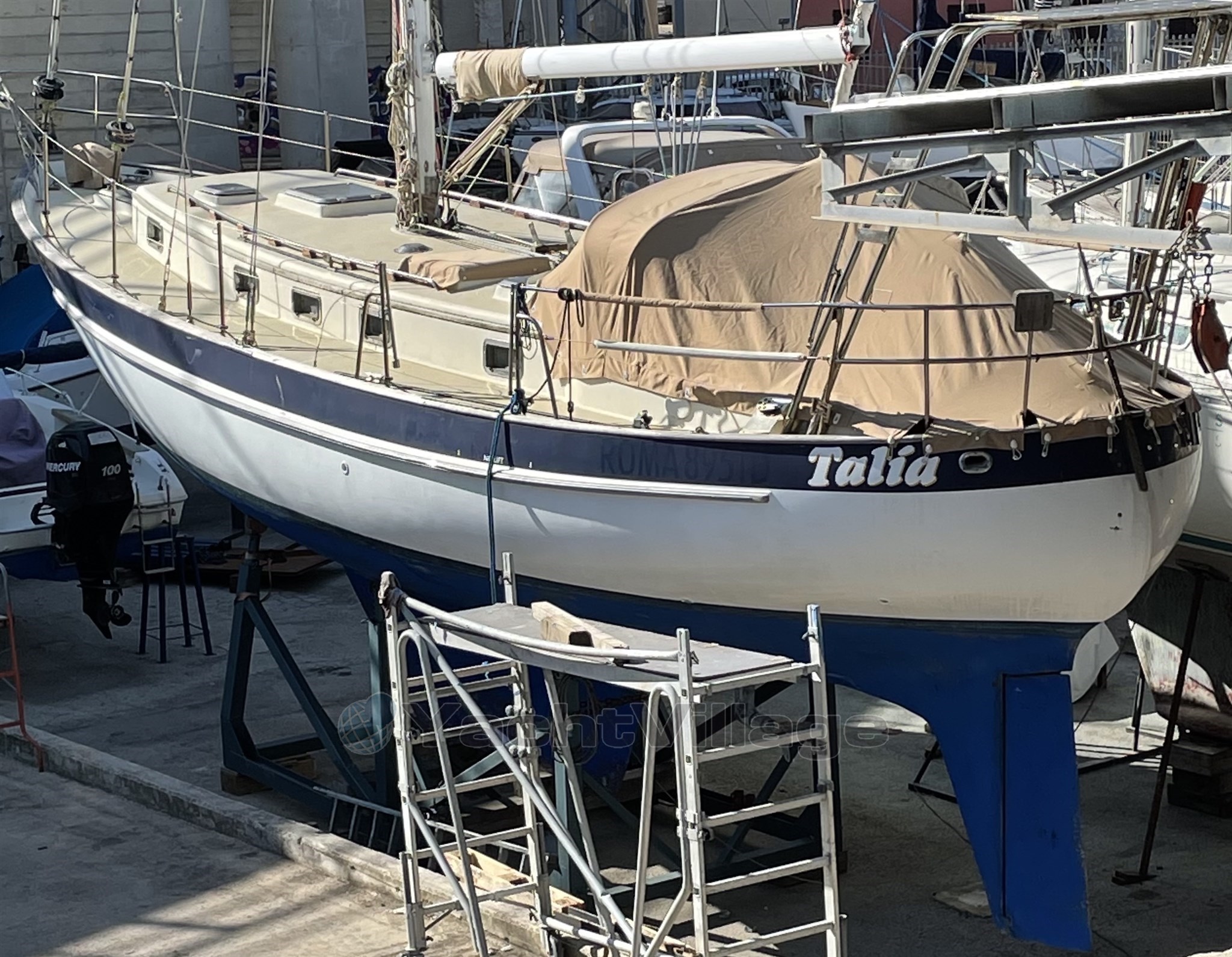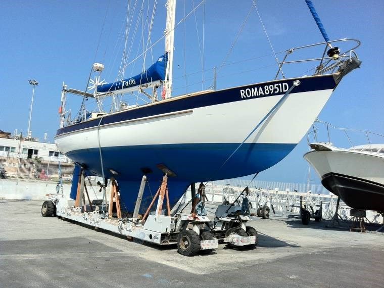 2002 MOTOR neu – neues Segelantriebsgetriebe – neue Ruder-Skeg-Unterstützung – Rumpf auf Null gebracht (geschliffen, mit Frischwasser gewaschen und getrocknet), dann eine erste Schicht Epoxidharz und Knetmasse, schließlich Anti-Osmose-Behandlung – neue Bullaugen, Bugluke – Battened Großsegel