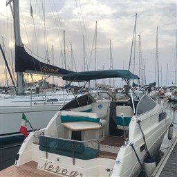 Nachfolgend finden Sie die Liste der Umrüstungsarbeiten: Motoren und Fuß wurden ausgeschifft und überholt - neuer Dämpfer - überholte elektrische Ausrüstung - gekauft n. 2 neue Batterien - verlängerte Heckplattform mit Teakholz bezogen - neue Kissen aus beigem Kunstleder - neue Stereoanlage und Lautsprecher - neues Echolot montiert - neuer Kessel.