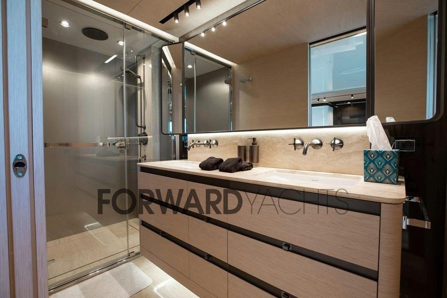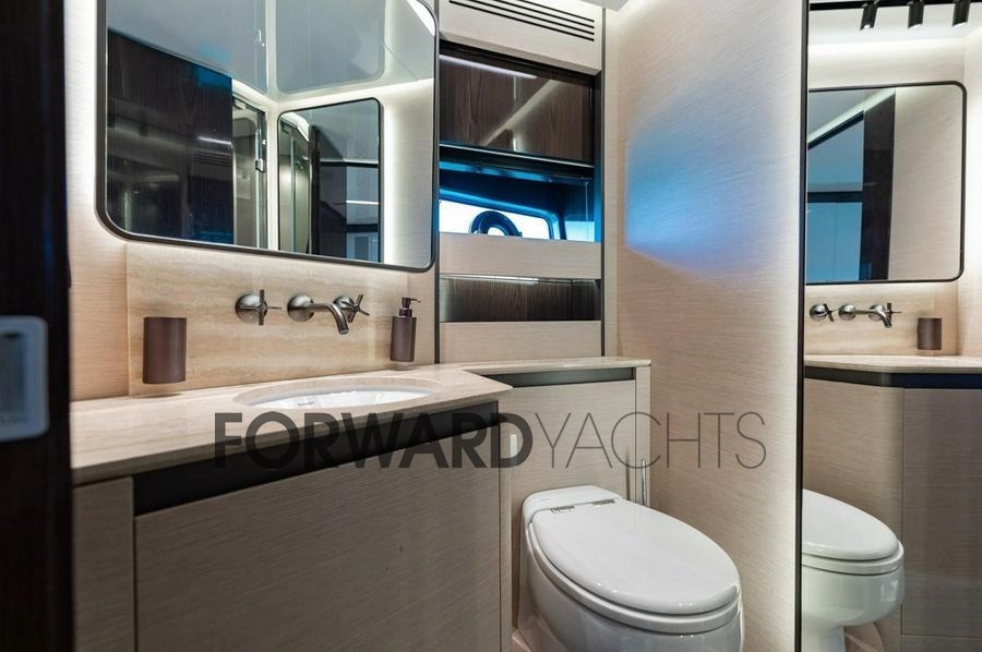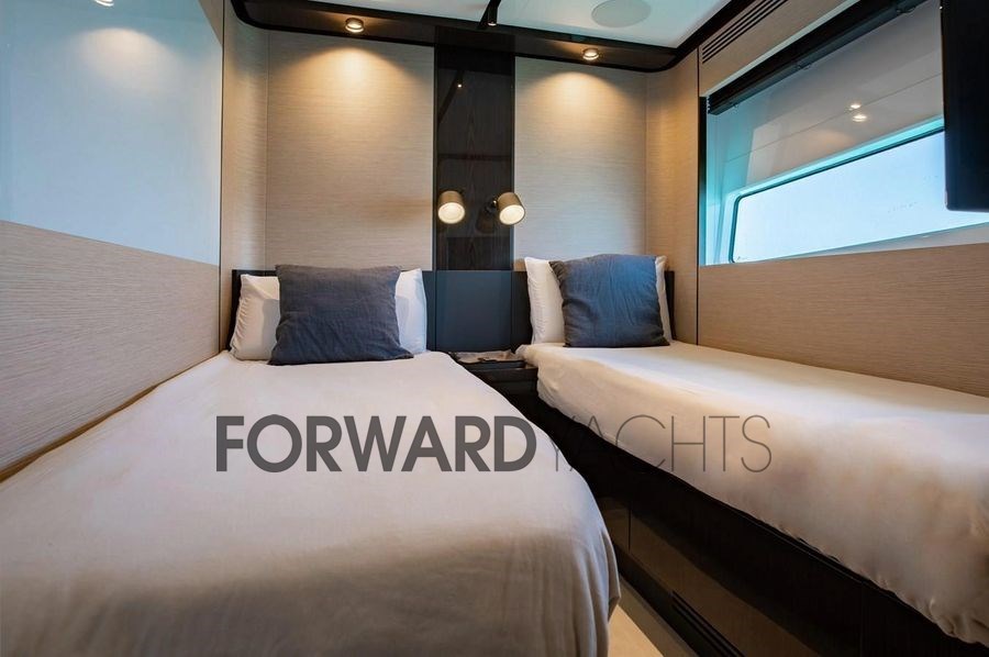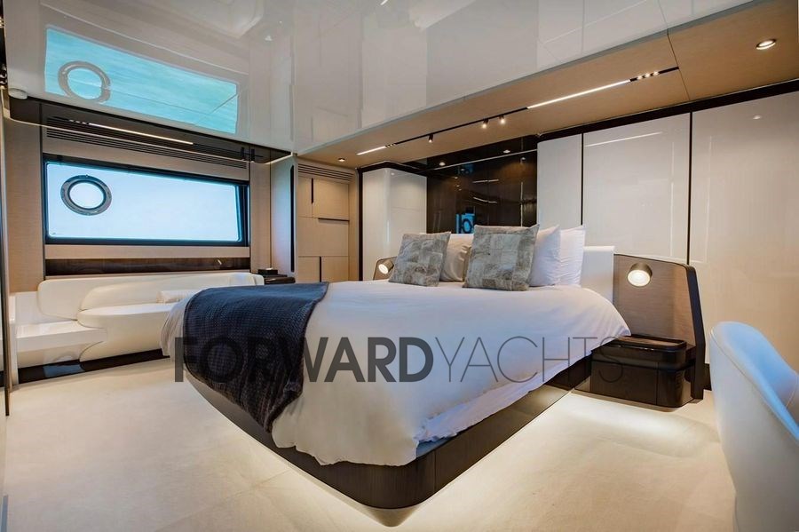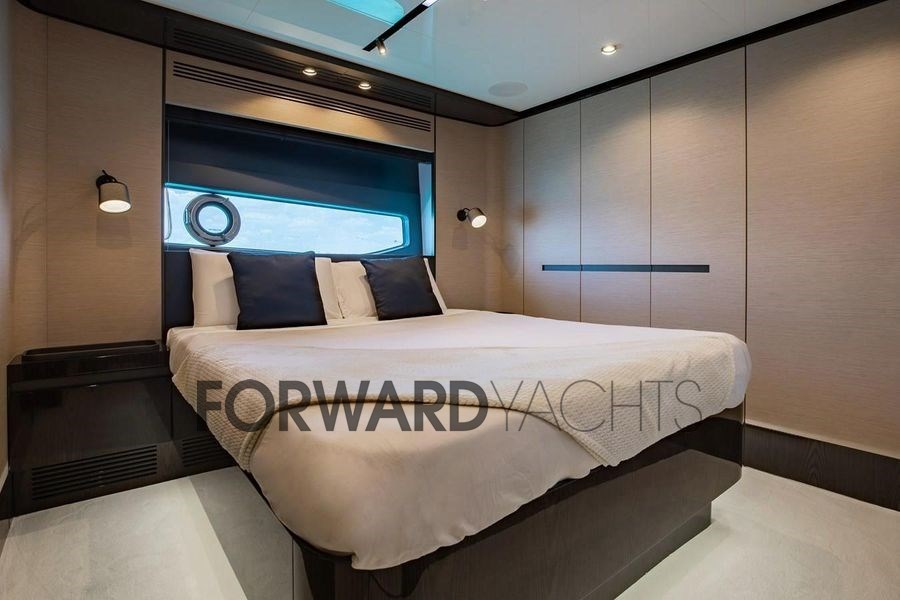 Die hellen und eleganten Innenräume bieten vier Kabinen für acht Gäste, darunter eine geräumige Besitzersuite und zwei VIP-Kabinen, mit einem Layout, das sowohl auf See als auch vor Anker Komfort, Privatsphäre und Funktionalität gewährleistet.