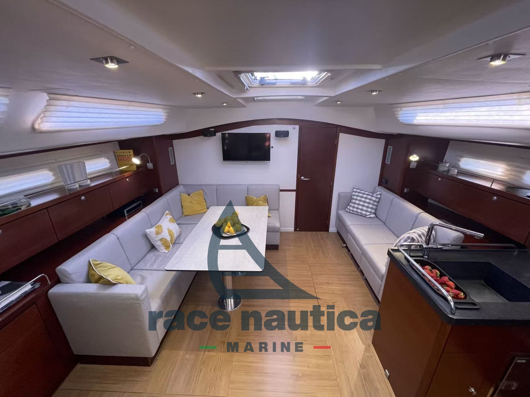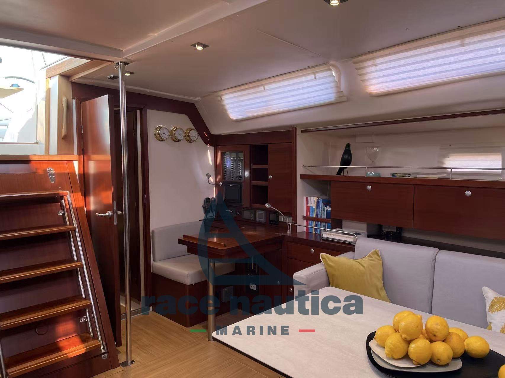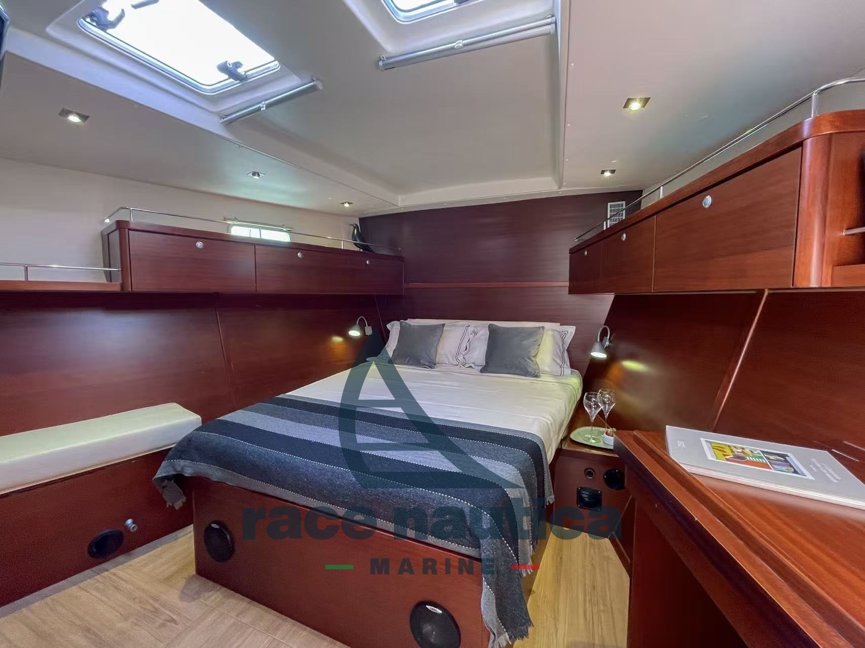 Jahr 2007: 3 Kabinen + Besatzungskabine, 3 Toiletten, Doppelkühlschrank, hydraulische Hecktür, Aluminiummast, Aluminiumbaum, 6 elektrische Winden, Doppelsteuerhaus, starrer Fang, Fock-Furler, Spiralrigging mit verdichteten Drähten, elektrische Winde/Liege, verstärkter Klappenanker, Stagsegel, Tormentina, Easy Bag (2021), Rollling Genoa, Baumabdeckung (2021), Lazy Jack, Gennaker, Deckmanöver (2021), Batten-Großsegel mit 2021er Trolleys + dem alten, Propeller-Max-Propeller. 3 Schaufeln, Bugtriebwerk, Kombüse, Ofen, Gefrier, Windstation, VHF, Log, Doppelstationskartenplotter 2017, Tiefensond, Doppelstations-Autopilot, Bilgepumpen, 100°-Motorbatterie ab 2021, 6 Servicebatterien aus 2021 120A, Batterieladegerät, Kessel, Deckdusche mit warm/kalt, Panda-Generator mit 5 kW, elektrische Winde, Wassermacher, Teakholz-Cockpittisch, Sicherheitsausrüstung, Kap. Spritzschutz, Anker und Kette, Raft rev. 2026, Vordach 2021, Webasto Heizung, Meerwasserpumpen, hydraulischer Gangway, Tvolo Dinette 2021 Keramikdecke, Marerassi-Speicher, Satellitentelefon, Rivetime ti sunbrella 2021, 2 Lederpuffs 2024, Radar 2017, Honda-Motortender, HIFI-TV-System, Klimaanlage.
