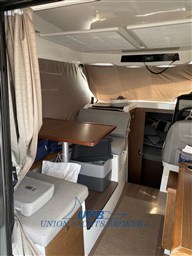 Mit zahlreichen Ausstattungsmerkmalen und großzügigem Stauraum bietet der Merry Fisher 895 beträchtliche Volumen für ein angenehmes Leben an Bord für bis zu 6 Personen. Am Bug des Bootes befindet sich die Kajüte des Besitzers, sehr hell dank der großen Fenster im Rumpf und eines Oberlichts sowie eine Koje für zwei Gäste. Zwei weitere Personen können die Nacht im Dinette verbringen, das in eine Doppelkoje umgewandelt werden kann. Das große Badezimmer, die funktionale Küche, die modulare Dinette und das Cockpit ermöglichen es Ihnen, komfortable, harmonische und gesellige Wochenenden zu verbringen.