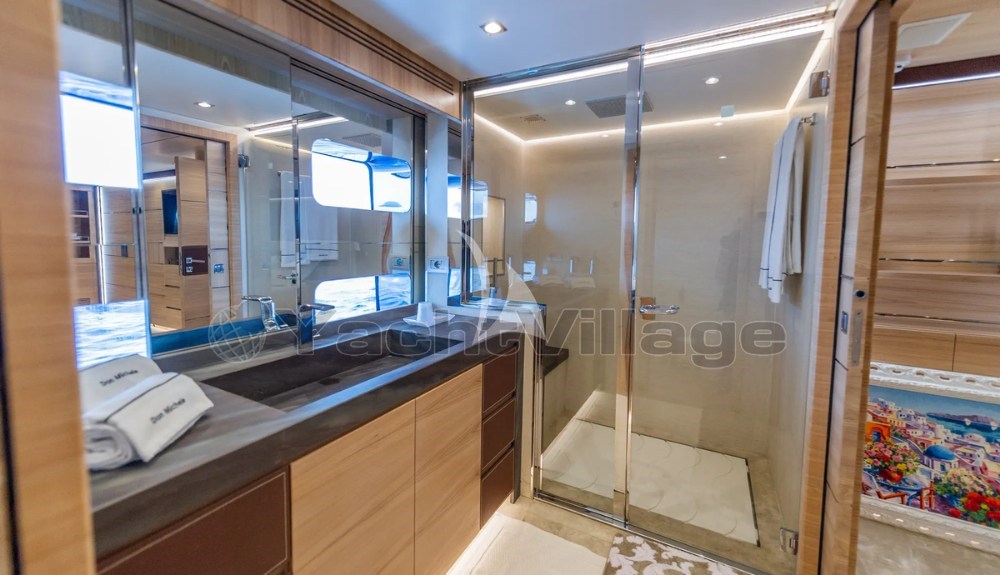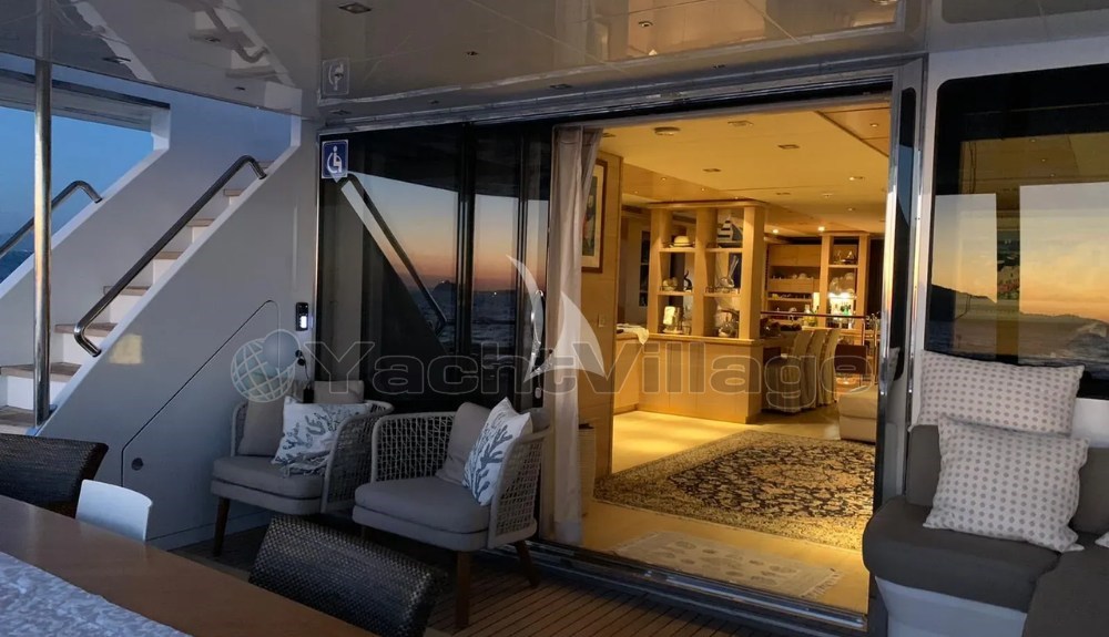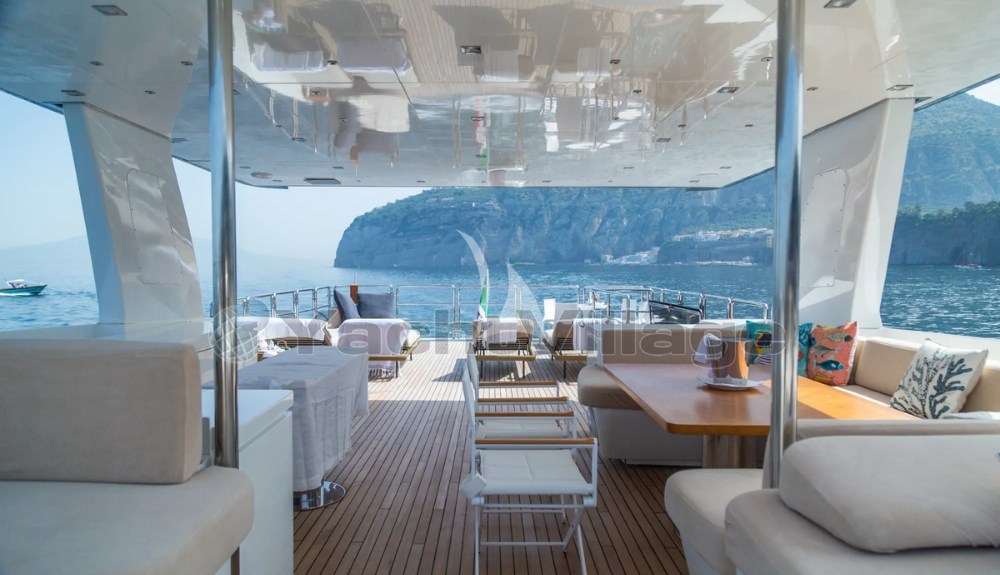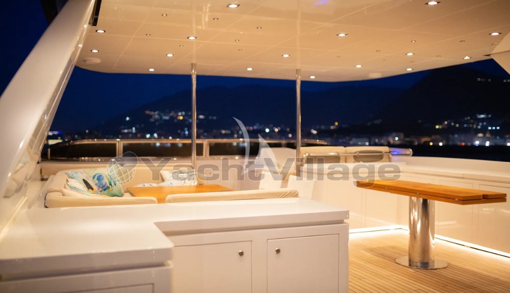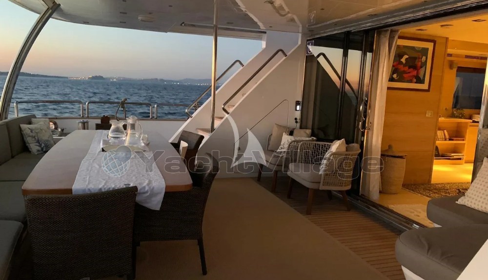 Eines ihrer Highlights ist das beeindruckende 85 m² große Oberdeck, ein echter Freiluftwohnraum, der für Gastronomie, Entspannung und Veranstaltungen im Freien ausgestattet ist. Dieser Bereich kann bis zu 40 Gäste am Kai aufnehmen, was Don Michele auch für private Feiern geeignet macht.