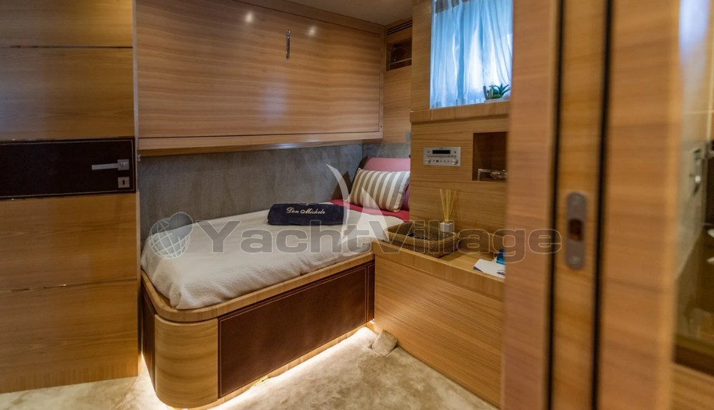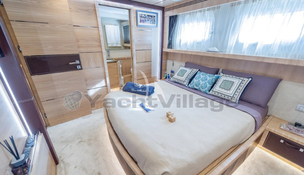 Auf zwei Decks verteilt bietet die Don Michele elegante und einladende Innenräume, die mit feinen Materialien ausgestattet sind und eine komfortable und entspannte Atmosphäre an Bord schaffen. Das Hauptdeck beherbergt einen hellen Salon mit Lounge, Esstisch und separater Kombüse, ideal für gesellige Momente mit Familie und Freunden.