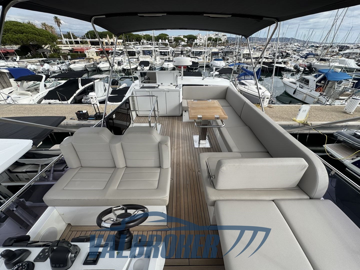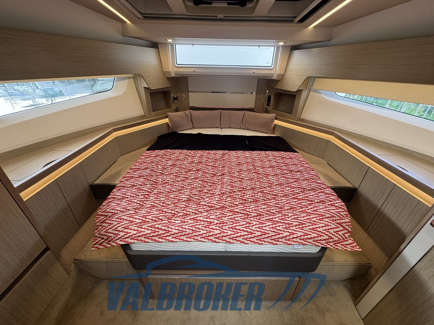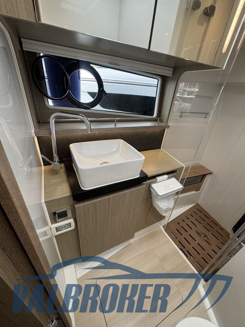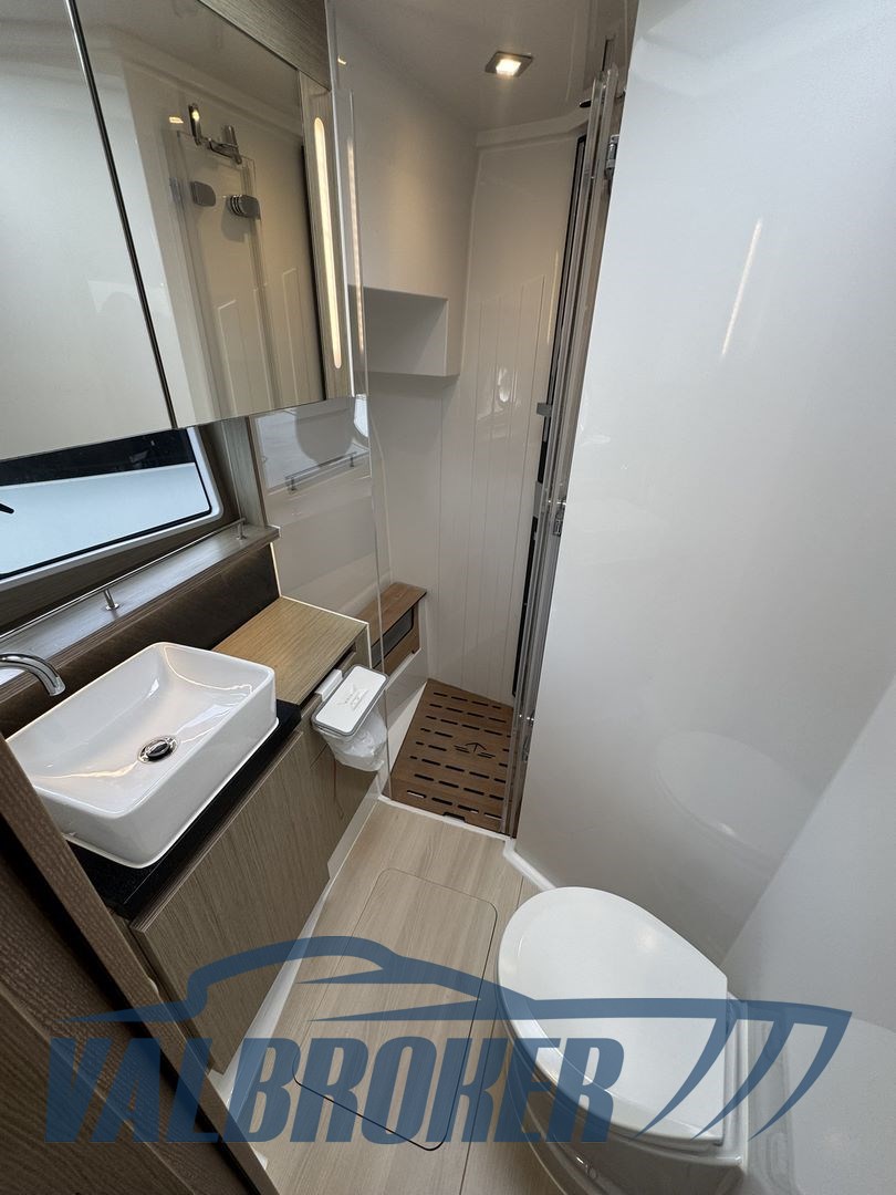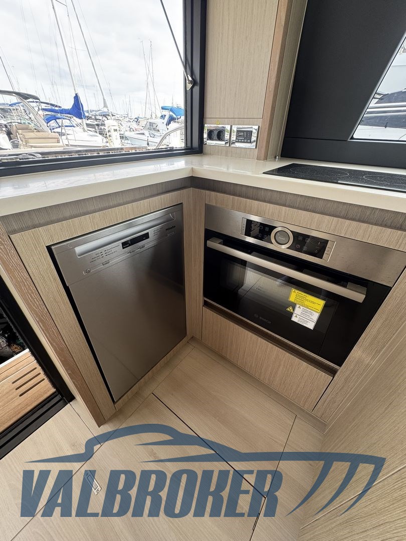 Flybridge aus der deutschen Werft, angetrieben von 2xVolvo D6 IPS600 Turbodiesel-Common-Rail und mit nur 295 Motorstunden. Die Wartung wurde regelmäßig vom offiziellen Volvo Penta Service Centre durchgeführt. Innenraum in hellem Wald. Unter Deck befinden sich drei flache Kabinen: zwei Doppelkabinen und eine Gästekabine mit zwei getrennten Betten und zwei Badezimmern. Küche mit Ofen, Induktionsherd, Geschirrspülmaschine und zwei großen Kühlschränken. Generator, Bugtriebwerk, Volvo Penta Manövrier-Joystick, umkehrbare Klimaanlage.