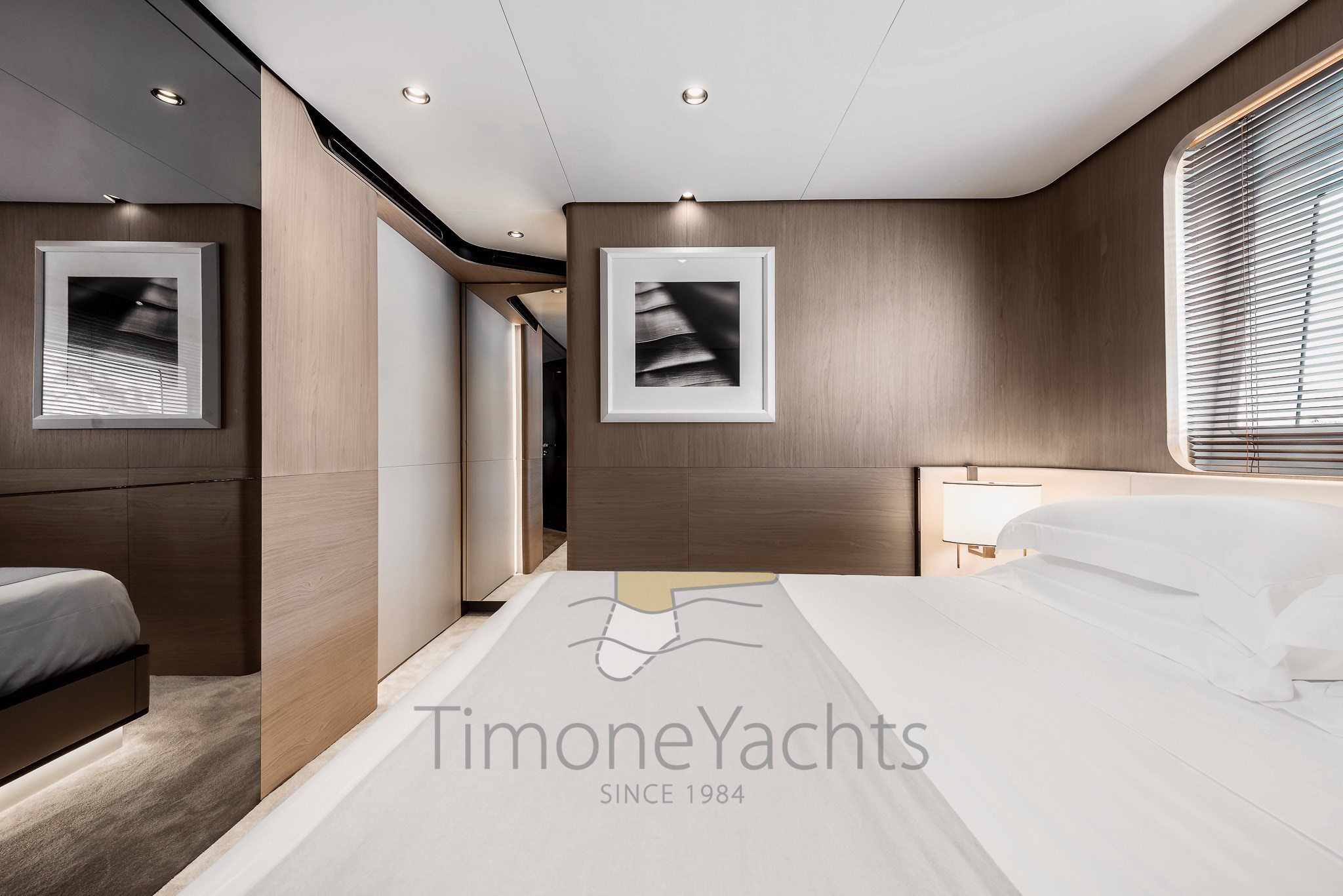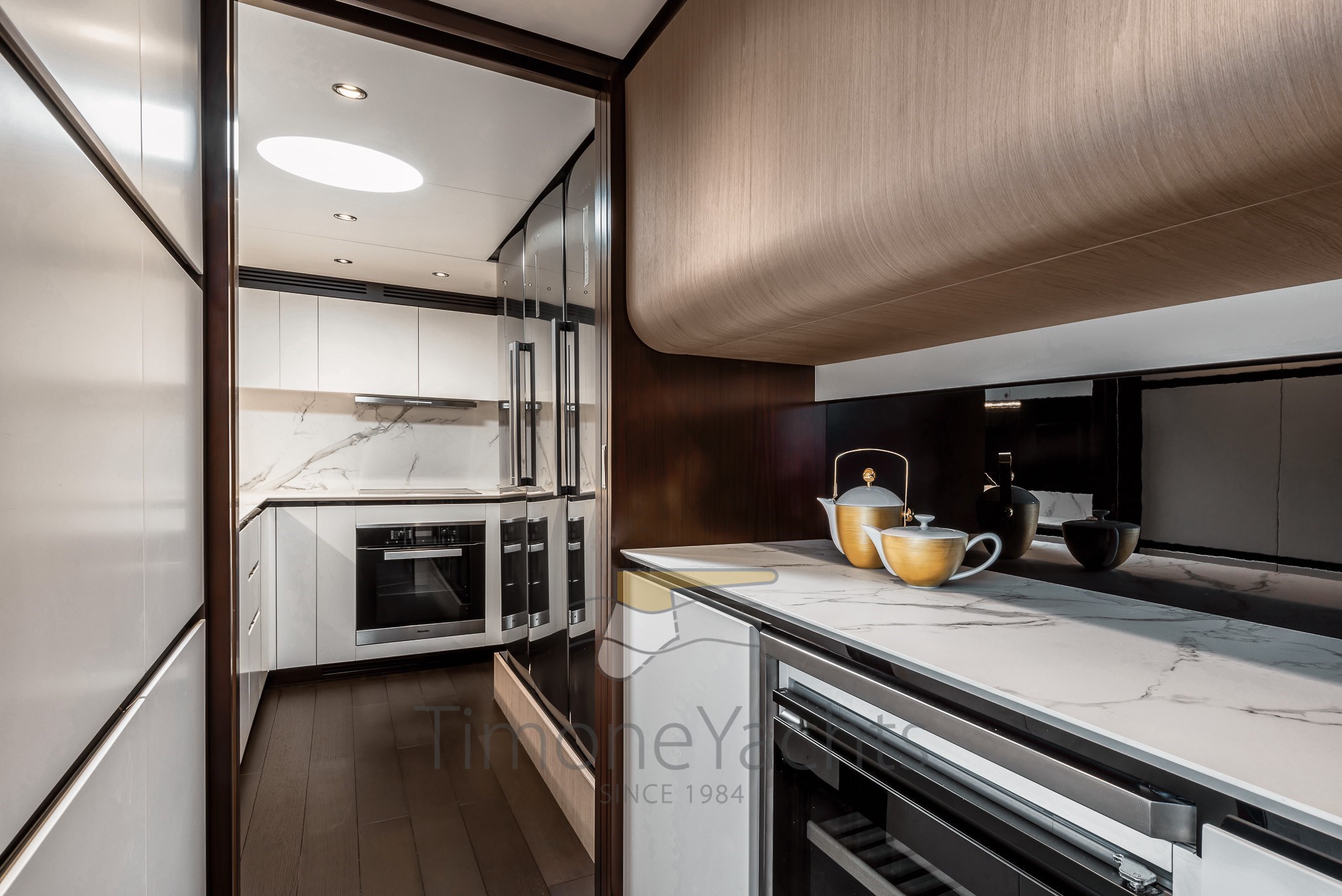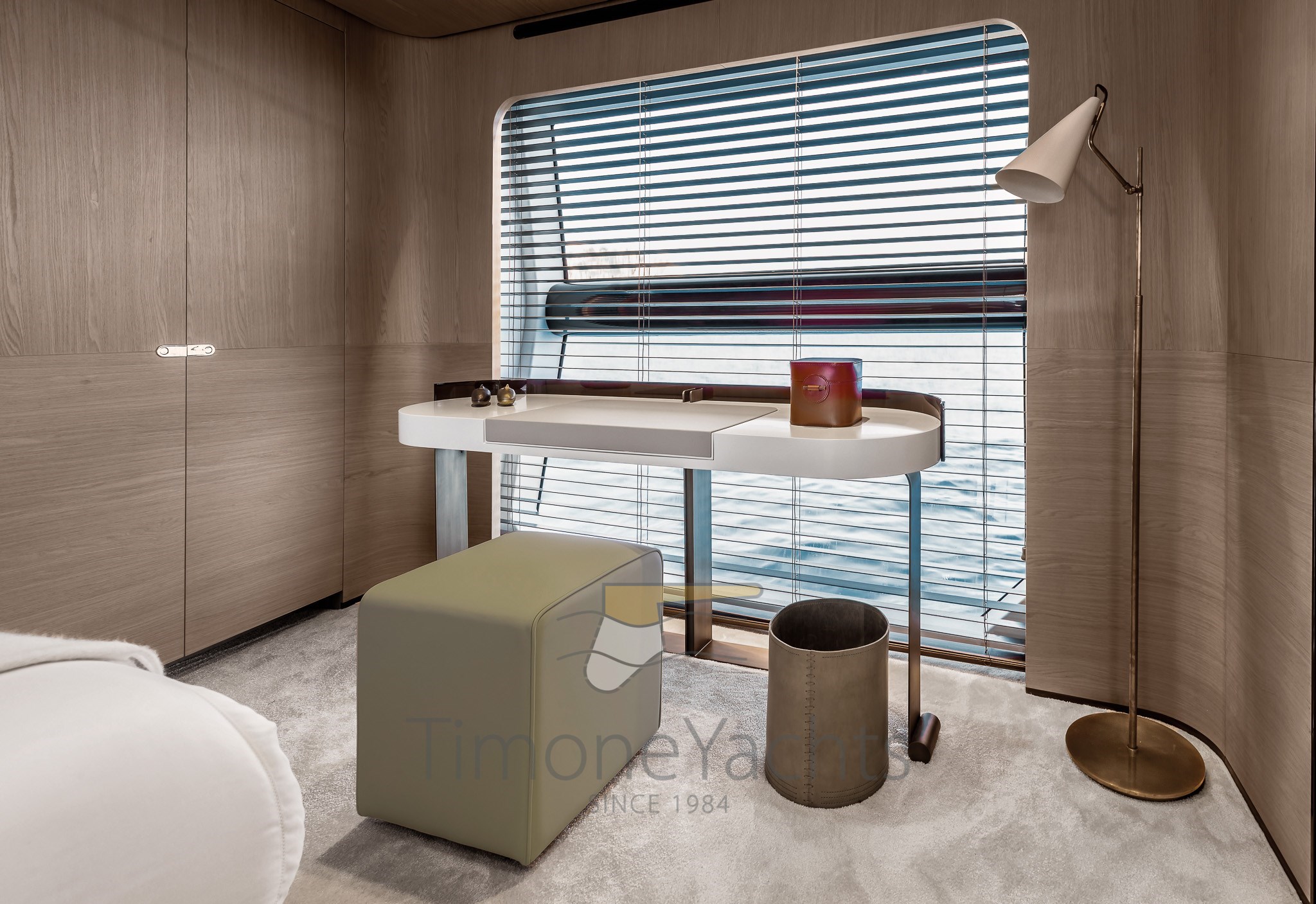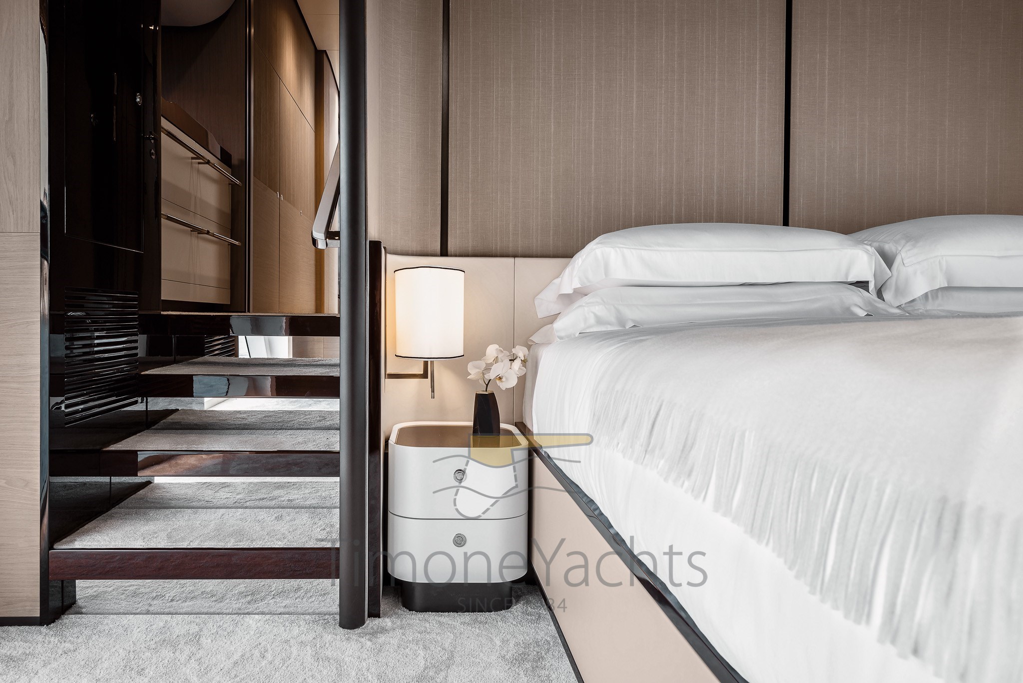 Im Gegensatz zu traditionellen Vorstellungen und den vorgegebenen Zwängen typischer räumlicher Einteilungen basiert die Unterteilung der Räume der Grande 27M auf einer Abfolge architektonischer Elemente und Schotten, die jeden Bereich umschließen und die Räume sanft mit einer harmonischen Krümmung an den Enden unterteilen, als wolle man die Wunder des Meeres durch die riesigen bodentiefen Fenster einrahmen.