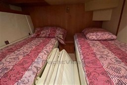 1 Eignerkabine im Bug mit großem eigenem Bad 1 Doppelkabine mit flachen Betten 1 Badezimmer 1 Küche