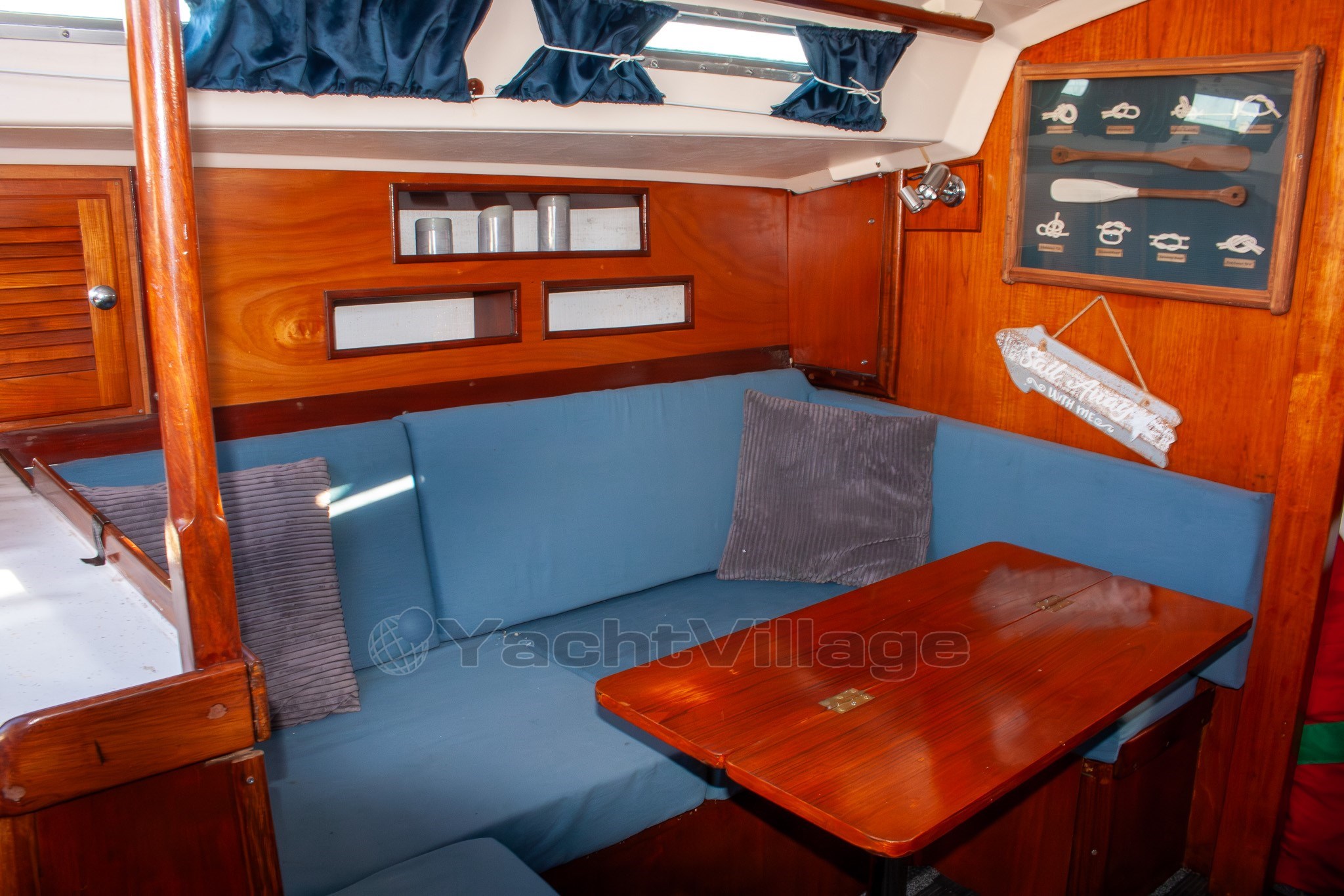 Comfortable layout typical of Sadler 32, great for cruising and liveaboard use