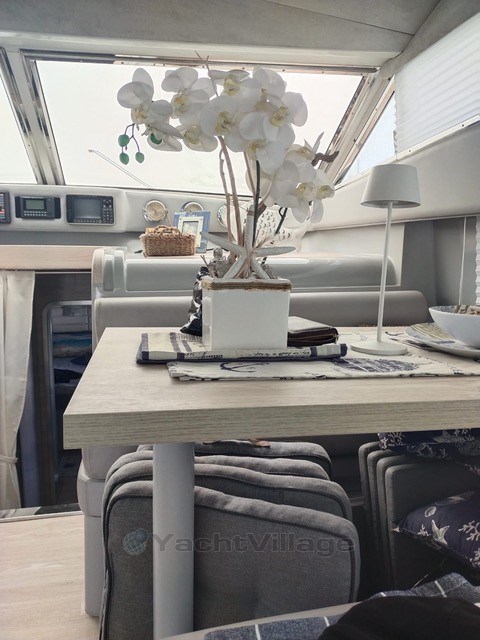 3 cabins + 2 bathrooms + 1 crew cabin...Air conditioning, generator, hardtop, autopilot, new hydraulic gangway, radar, satellite TV, complete instrumentation, new cushions,