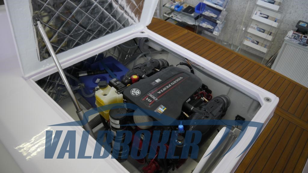Sporty motorboat with an elegant design. It combines the renowned hydrodynamic engineering of the Italian shipyard with comfort and luxury. Powered by 1x Volvo Penta 380 V8 petrol engine with only 85 hours of running!