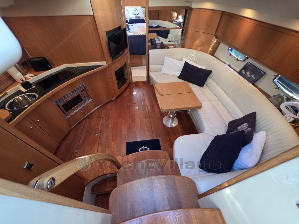 Large saloon, equipped kitchen, 2 separate cabins, 2 bathrooms with WC/shower.