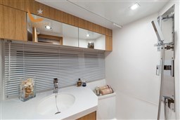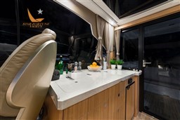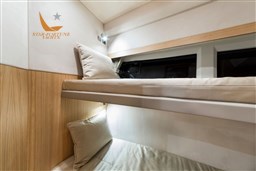 Nmea 2000 interface - Bow thruster - Blackout curtains in the cabins and dinette - Curtain at the entrance door - Natural teak parquet in the dinette - Mosquito nets Decorated bed covers - Natural Teak bathing platform - TV predisposition (2) in the dinette and in the forward cabin.