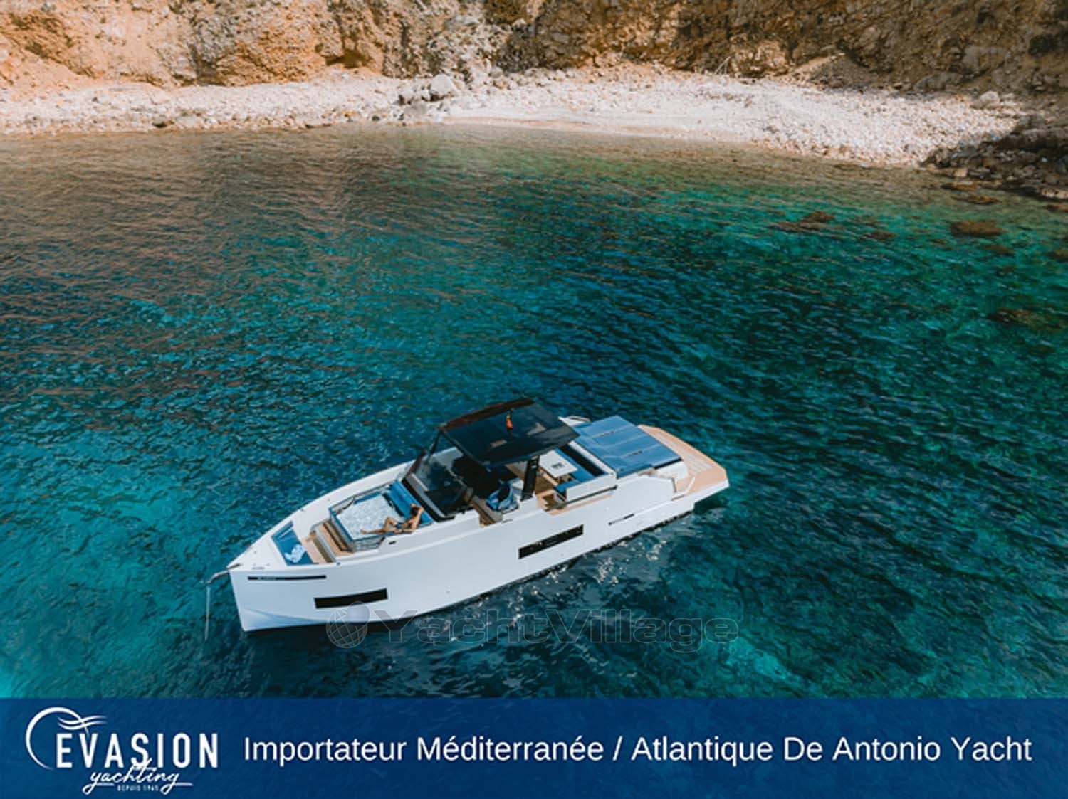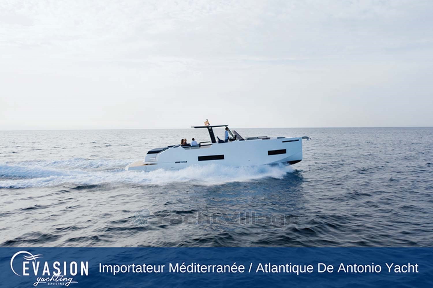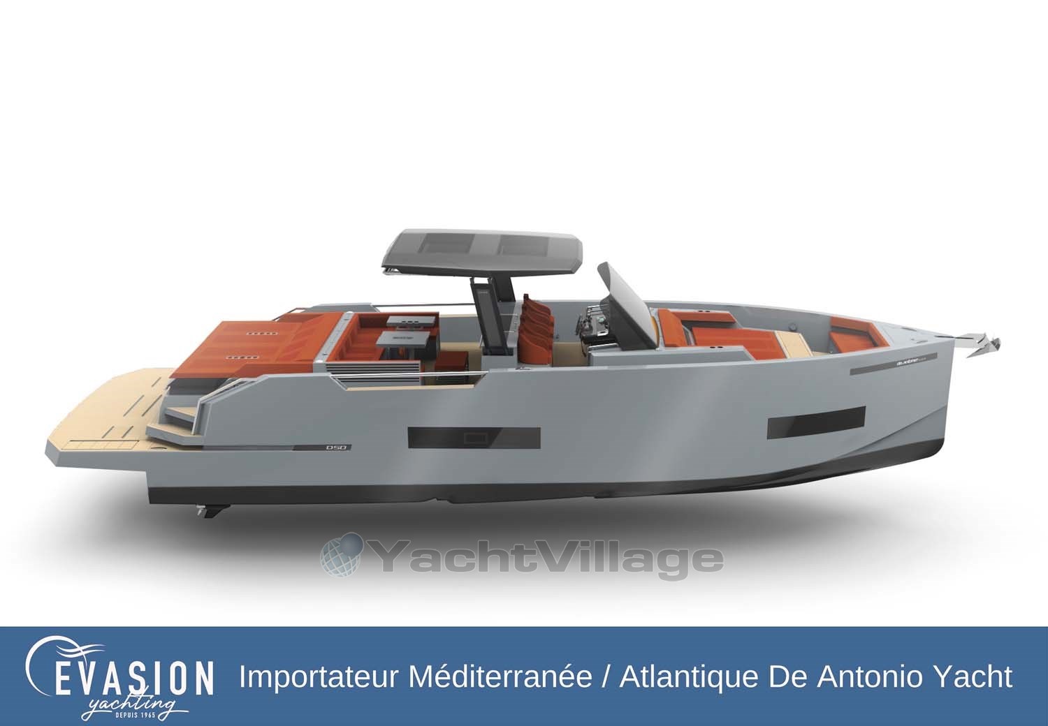 EVASION YACHTING, importer for a large part of the Mediterranean and the Atlantic for DE ANTONIO YACHTS, invites you to come and discover the NEW DE ANTONIO D50 Open, triple or quadruple petrol engine, on order.
