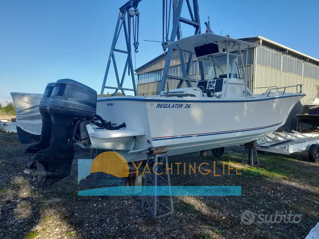 Regulator 26 Cc is a 8 meters Motorboat built in 1992. Moored in Lazio (Italy) is available for sale at 40,000 EUR on YachtVillage.net. Boat, Boats, Boat For sale, Boats Used, Motorboat For sale, Motorboat Used, Motorboats For sale, Motorboats Used, Ranking 3 / 10