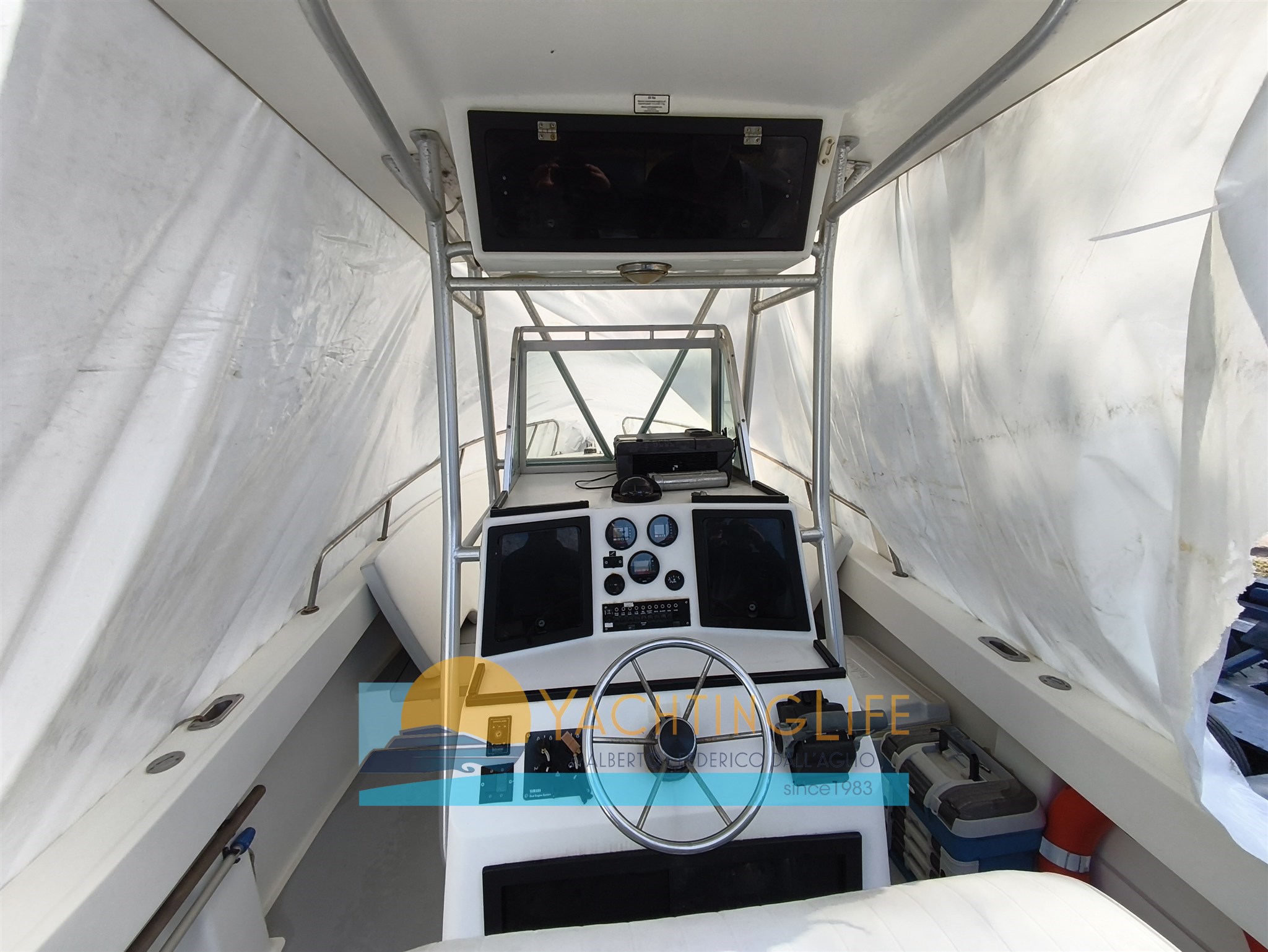 Fisherman from the well-known American shipyard with indisputable seaworthiness and construction solidity - To be re-engined and replace the fuel tank - Compartment under the console that can accommodate a small bathroom, currently used as storage -