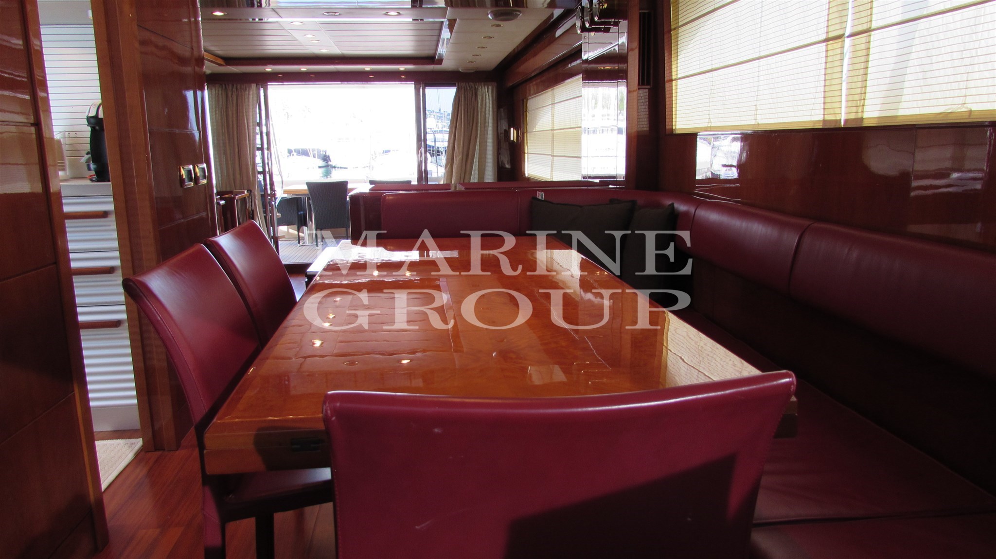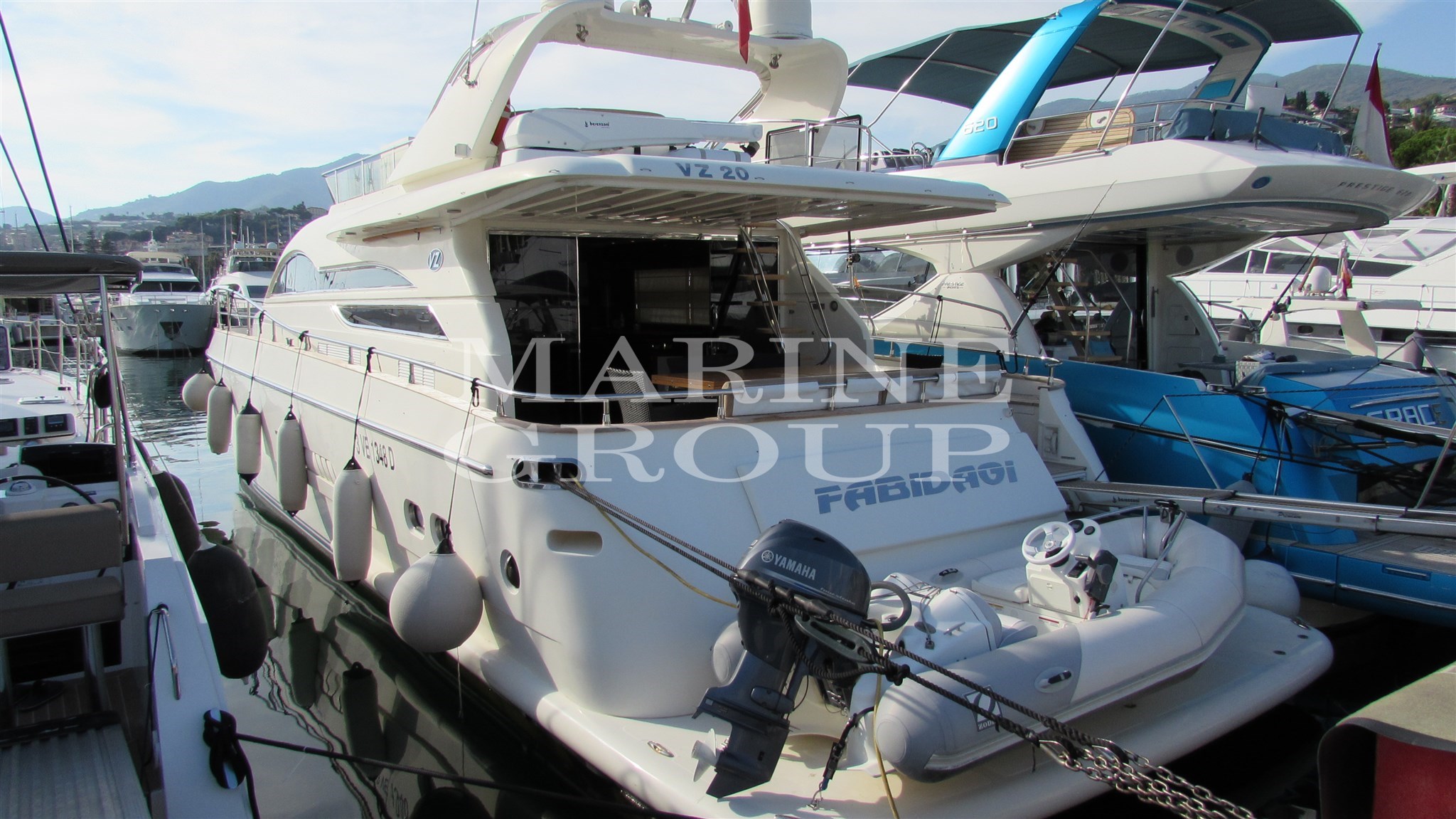 Speakers, Satellite TV Antenna, Air Conditioning, BBQ/ Grill, Bimini, Boiler, Reversible Air Conditioning (separate in all rooms), Freezer, Home Automation Control, Kitchen, Complete Cushions, Stern Cushions, Bow Cushions, Flybridge Cushions, Cockpit Cushions, Watermaker, External Refrigerator, 4 Internal Refrigerator, ICE Maker, TV System, Washer-Dryer, Dishwasher, Wooden Interior Floor, Electric Plate, 12v Internal Sockets, 220v Internal Sockets, AM/FM Radio, Satellite receiver, Stereo, Flybridge Cover, Awning, TV, AIS, Rudder angle, Radar antenna, Compass, Teak side walkways, Battery charger, Chain meter counter, Odometer, Deck shower, Double wheelhouse, Stern thruster, Bow thruster, Davits for tender on flybridge, Sink in the cockpit, Log, Gangway (Besenzoni), Platform, Entrance door, Side door, Cockpit Teak, 220V Quay Socket, Quay Water Intake, Radar, Electric Windlass, Swim Ladder, Cockpit Table, Dinghy, Trumpet, Teak Deckhouse, Stern Mooring Winch
