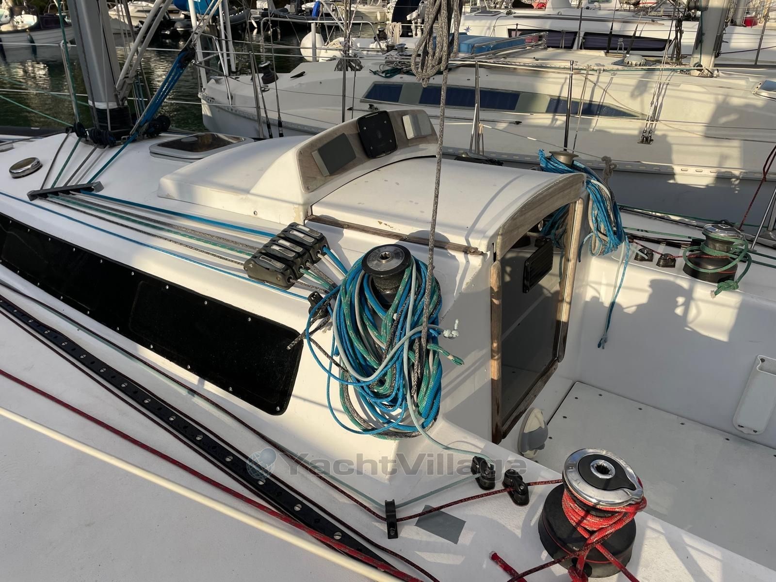 - Optimized deck plan with upgraded Harken fittings: mainsail rails & shortened genoa rails + flat deck pulleys + mast deflection pulleys + 2 XAS pianos + barber haulers.
