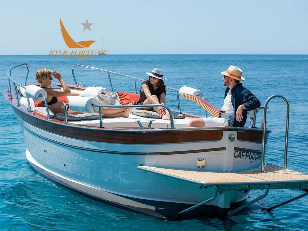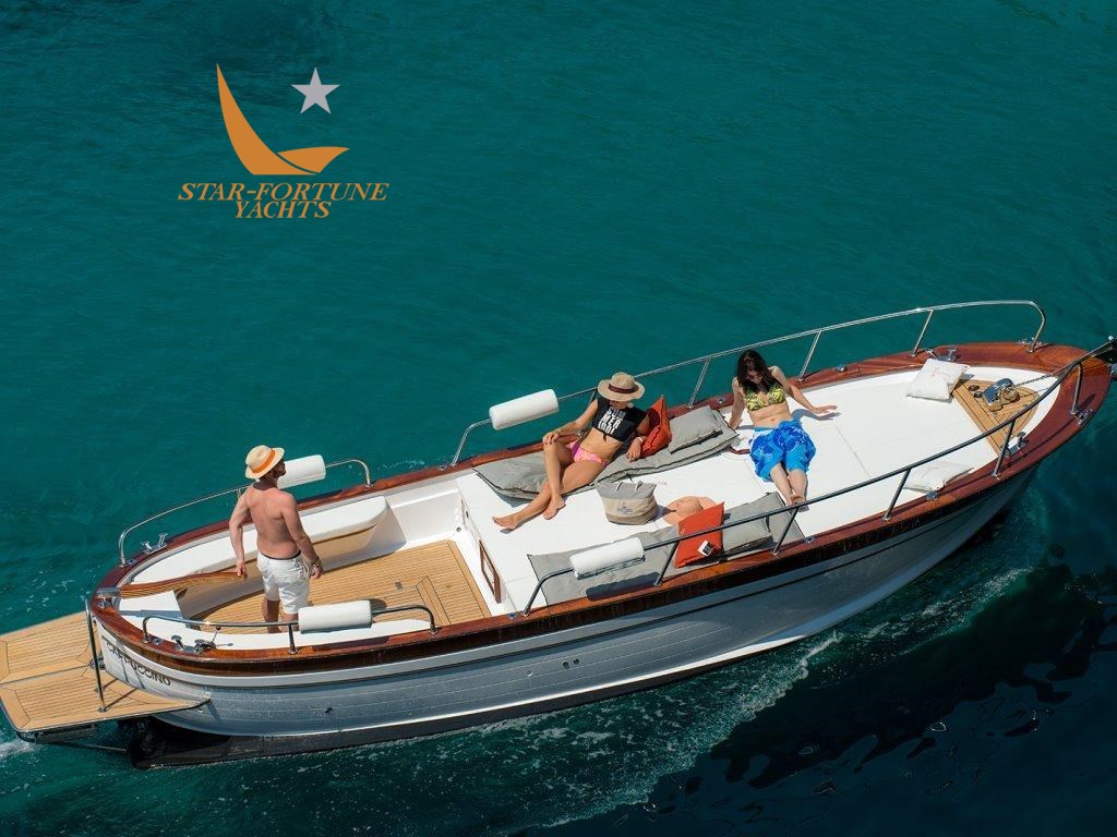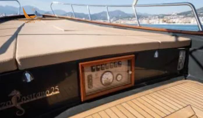 Optional: Sun Awning with 4 Candlesticks, Tessilmare Awning, Side Swim Ladder, Stern Platform + Swim Ladder, Autoclave with Shower and Tank, External Cushions, Backrest, External Square Cushions (40×40 with Logo), 10 Kg Stainless Steel Anchor + Galvanized Chain, Total Teak Deck Covering, Teak Stern Covering, GPS Installation, Mahogany Boat Name, Outdoor Table (with stainless steel column), Console + Seat, Bow Thruster, Mast, Electric Winch.
