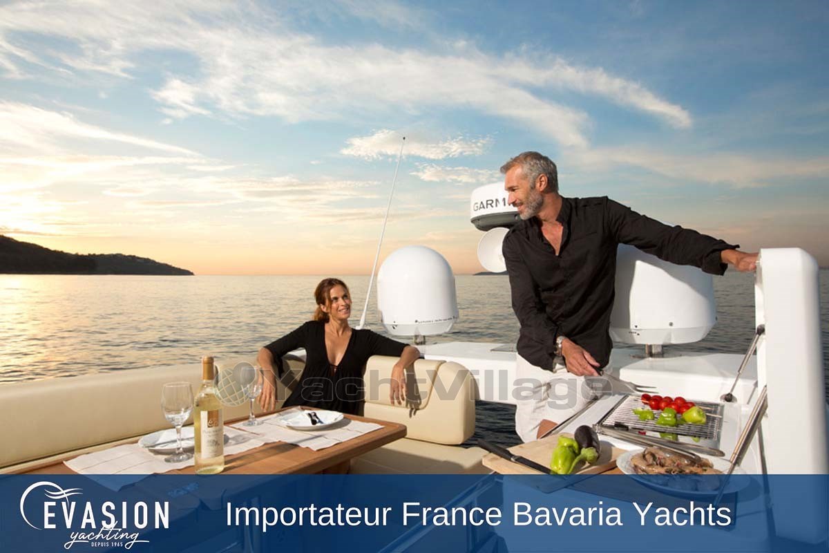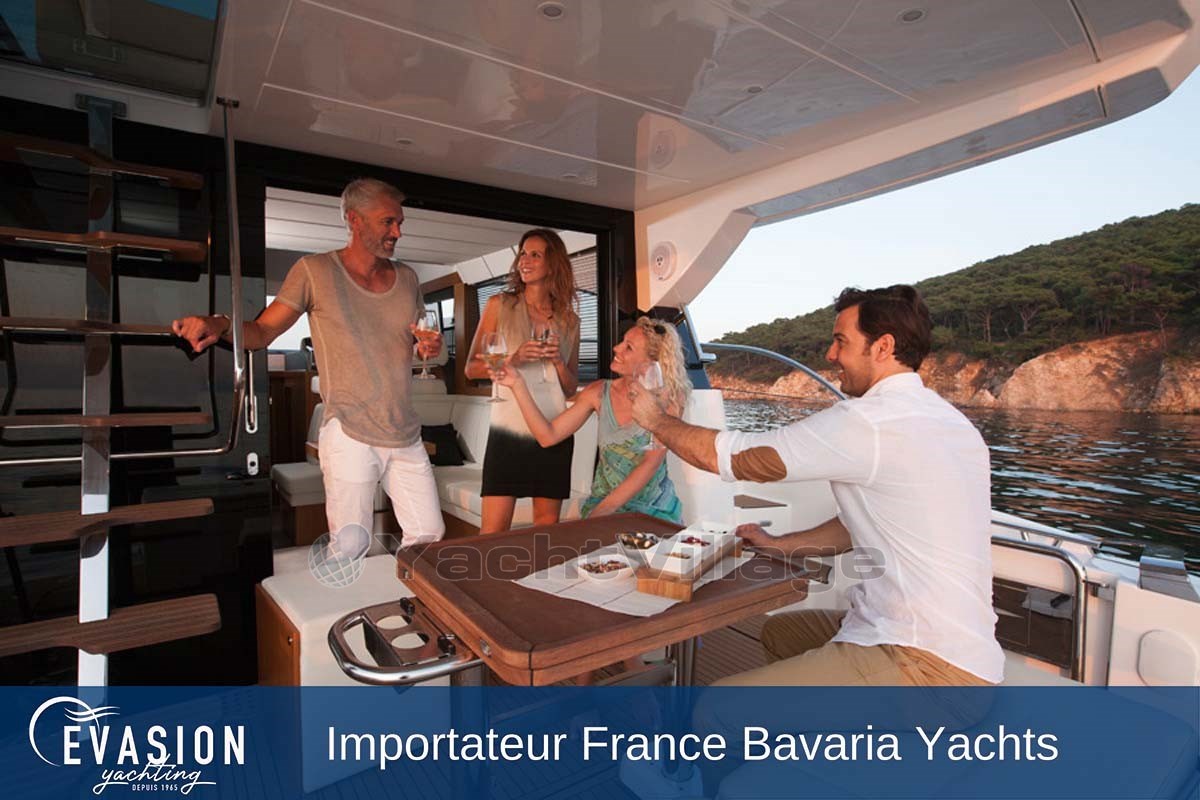 EVASION YACHTING, historic dealer BAVARIA YACHTS invites you to come and discover the BAVARIA VIRTESS 420 Fly speedboat.
