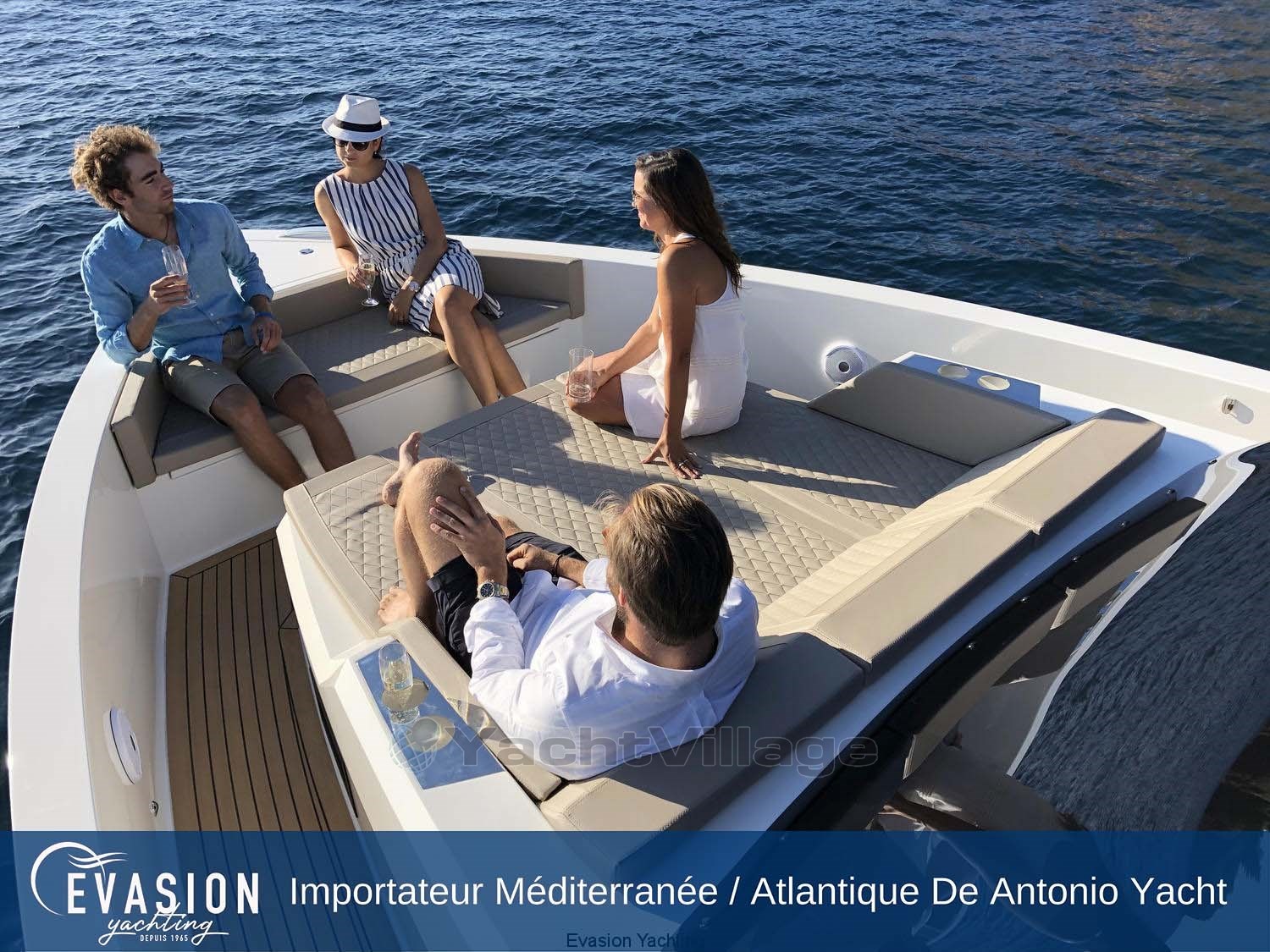 EVASION YACHTING, importer for a large part of the Mediterranean and the Atlantic for DE ANTONIO YACHTS, invites you to come and discover the NEW DE ANTONIO D42 Open available with triple HB petrol engine.