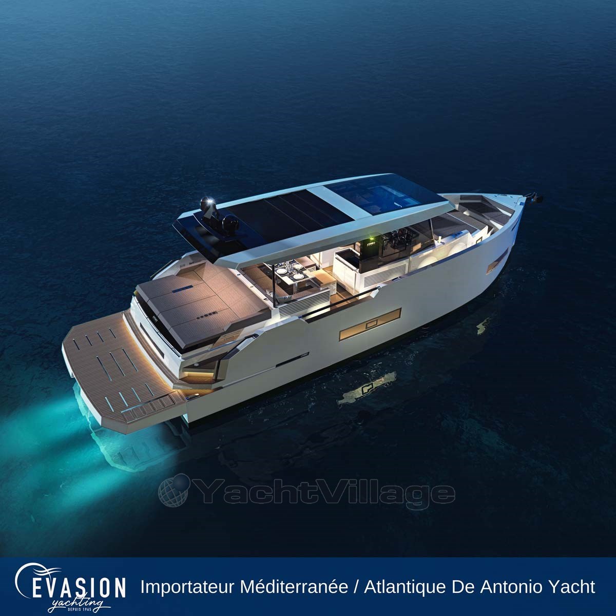 EVASION YACHTING, importer for a large part of the Mediterranean and the Atlantic for DE ANTONIO YACHTS, invites you to come and discover the NEW DE ANTONIO D50 Coupé, triple or quadruple petrol engine, on order.