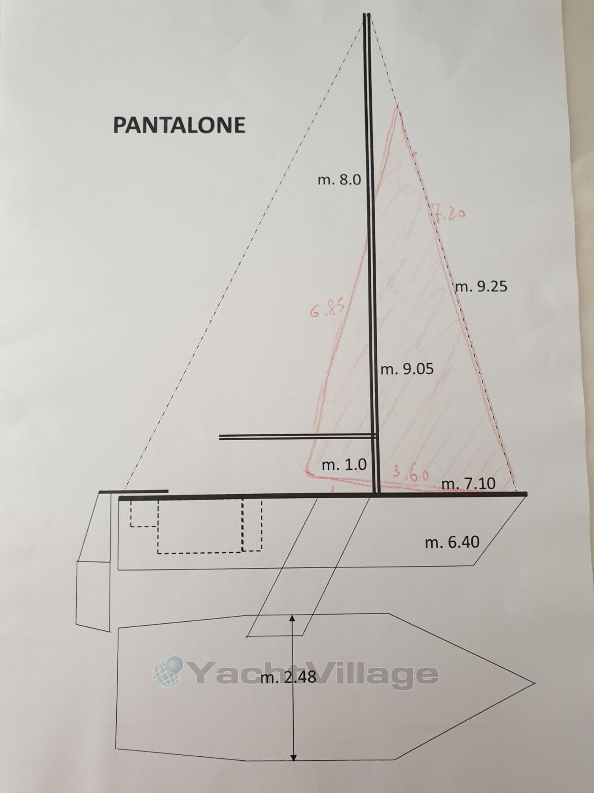 Sailboat configured with sloop model Pantalone Anno 1987