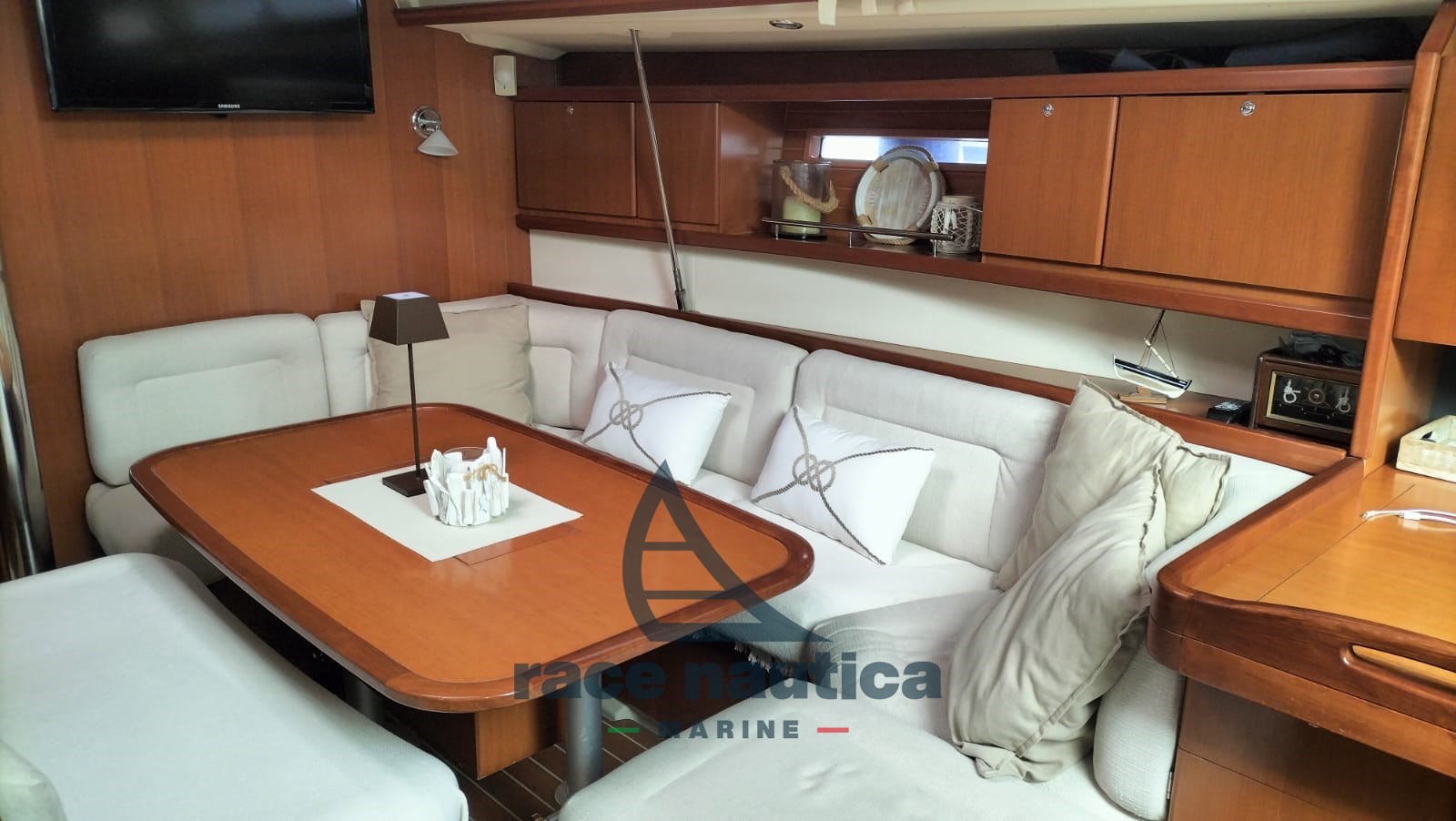 Raymarine E80 chart GPS at chart table, Raymarine E80 chart GPS in cockpit, Raymarine Radar, Raymarine ST6000 autopilot, Wind ST60, Tridata ST60, Raymarine VHF (2018) at chart table, AIS, Raymarine external VHF station, speaker, Remote windlass with digital chain counter, BM2 battery monitor, Webasto diesel heating, Boiler, Refrigerator, 2 electric toilets (one of which converted into manual), Waste water tank, 220v internal sockets, Double USB sockets in all cabins, LCD TV in dinette, Teak deck, Retractable bow thruster, Double wheelhouse, Teak cockpit, Gangway, Cockpit table, Sprayhood, Bimini, Cockpit table covers and rudders, Bowsprit anchor kit with 50mt of 12 mm chain (2018).