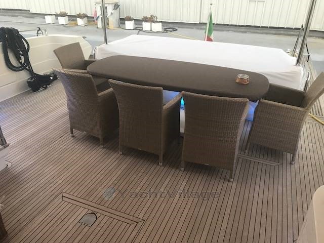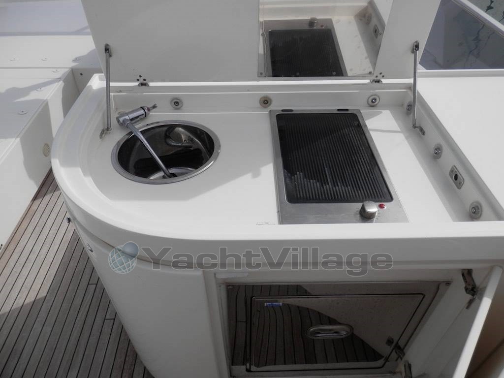 Bow and stern thruster Side Power - Seatel SAT antenna - retractable LCD TV in the saloon - bar cabinet with ice maker, sink and hotplate on flybridge - underwater lights under the aft platform - Miele dishwasher - Miele oven - Miele hob - Miele fridge freezer - Novamarine 4 m. tender with Yamaha 40 hp 4t outboard.