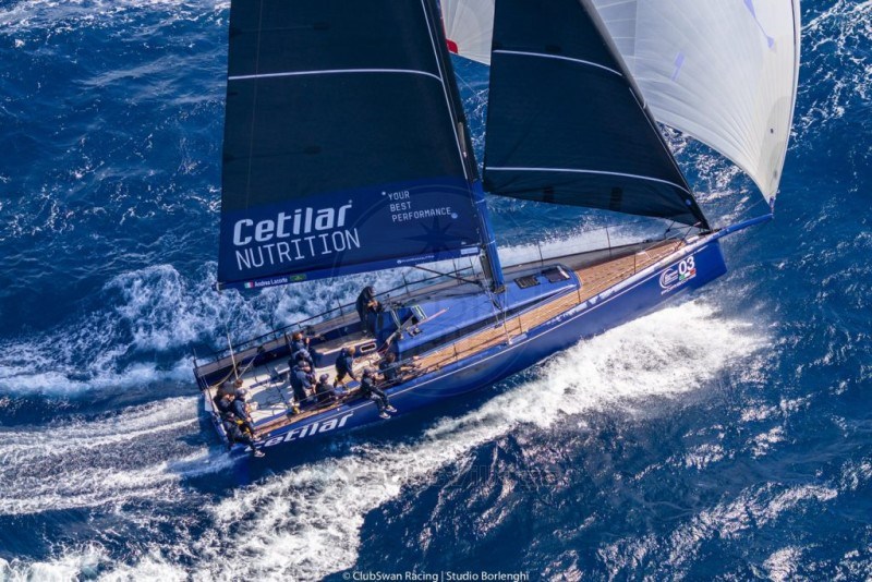 SWAN 50 CLUB, 2016, J. KOUYOUNDIJAN, BLUE CARBON HULL AND DECK (2023), 1 x 40 HP VOLVO PENTA, 2 CABINS, 1 BATHROOM, SEPARATE KITCHEN, B&G / SAILMON ELECTRONICS, FARO SOFTWARE, AIS, JUMBO, CARBON MAST AND BOWSPRIT, CARBON SAILS (2024), CARBON RIGGING (2023), HYDRAULICS WITH PTO FOR MAINSAIL BASE, VANG, MAST JACK, CUNNINGHAM, RUNNING BACKSTAYS. DISMANTLABLE CRADLE AND FURNISHED CONTAINER WITH GLASS WALLS, FLOORING, SHELVING, AIR CONDITIONING, +39 06 65 22 258/9, www.mediaship.it - LISTING CODE W181686/V