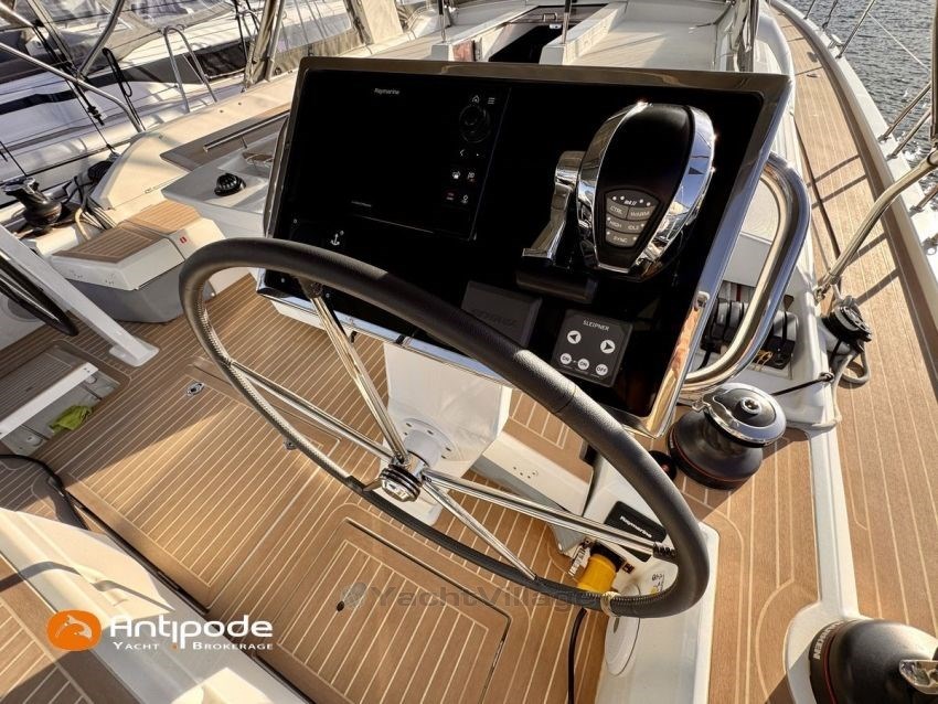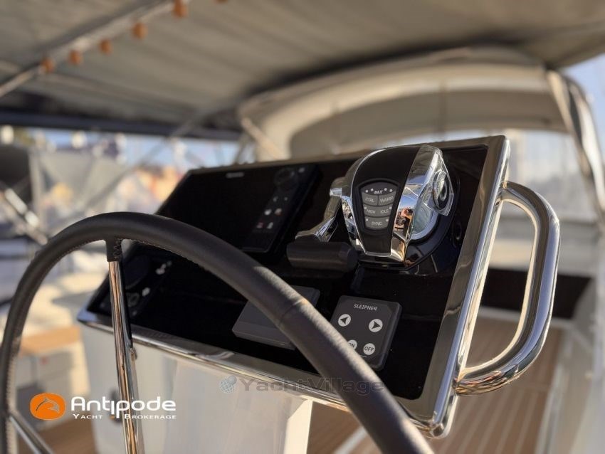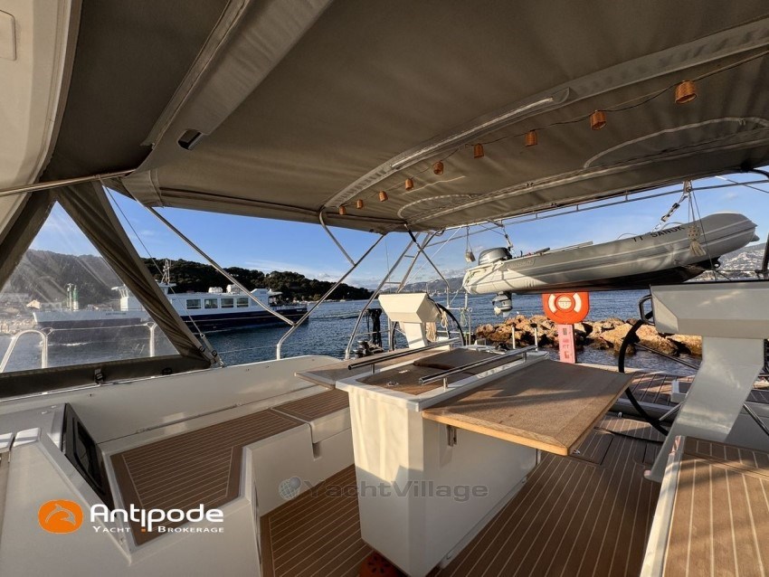 OCEANIS 51.1, 2023, first hand, never chartered, no accident, Yanmar 4JH110, 110 hp (350 hrs), Bow thruster, Family Version, Woodwork - Alpi Noyer, Interior layout version 1 forward cabin, 2 aft cabins, Crew cabin in front peak(without toilets), Saloon table convertible in double bed, Offshore pack incl. large wheel stations, Upwind and downwind package, 2 electric roof winches for adjustment and sail handling - Harken 46, GRP cockpit arch for main sail sheet system, Main sail sheet - German system, Deck passageway - Flexiteek, Slatted cockpit floor - Flexiteek, Cockpit seats - Flexiteek, Cockpit table (wood) with 2 folding leaves, liferaft storage, Wheel steering system, 2 wheels, XXL 900 mn, leather covered, Fully opening transom, convertible to bathing platform, electrically operated, Cockpit sprayhood, Cockpit bimini top, Cockpit seat and back cushions , Sun bathing mastresses, Cockpit electric windlass remote control, Opening life lines port and starboard, S/S bow protection, Aft stainless steel arch, including davits and supports for solar panels, Deck stepped classic mast , Semi full batten main sail, Main sail lazy bag, Furling genoa 110 % (in replacement of standard self tacking jib), Raymarine in board autopilot - P705, Autopilot remote control, 2 cockpit displays - Raymarine 170 S, 2 X GPS and chartplotter (cockpit) - Raymarine Axiom 9, AIS Transponder CLASS B (emission and reception) - Raymarine AIS 700, VHF at chart table - Raymarine RAY 73, Dual VHF station RAY 90, FUSION audio sound system , Fridge unit 12 V (top opening door), Fridge unit 12 V (front opening door) - 130 l, Freezer 12 V - 85 l, Cockpit gaz plancha, Washing machine and dryer 220 V, 220 V shore power + battery charger - Cristec 60 amp, Engine alternator 125 amp, Service batteries - 2 X AGM 140 amp, Extra service batteries - 3 X AGM 100 amp, 12 V to 220 V Inverter - 2000 VA, USB sockets - X 6 , WEBASTO heating system (2 units), Cabins and saloon fans, Electric toilets X 2 (fresh and sea water), Solar panels - 2 X 375 W, Extra fresh water tanks 2 X 165 liters (730 liters in total), Extra fuel tank 200 liters (400 liters in total), Leds navigation lights, Dinghy - 3D TENDER, Outboard engine - Yamaha 15, Located French Mediterranean. For more information or to make an appointment for a visit, contact : Jérôme Le Joubioux +33 6 07 45 71 73 - jerome@antipode-yachts.com