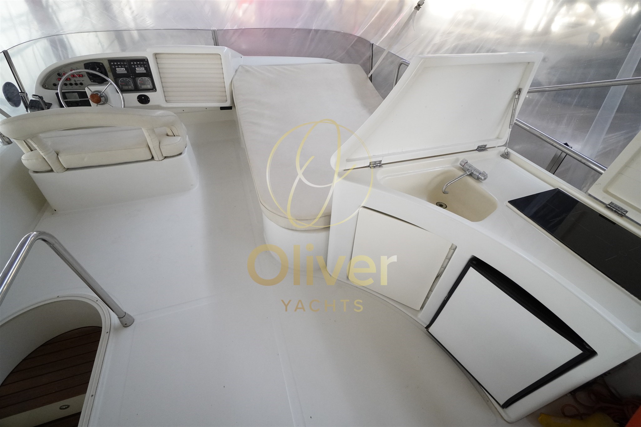 The boat favors livability: large and usable flybridge, functional cockpit well connected to the saloon, comfortable sidedecks and an external distribution that makes life on board simple and natural. It is not an "image" boat, but a fly that focuses on substance, volumes and a balanced hull.