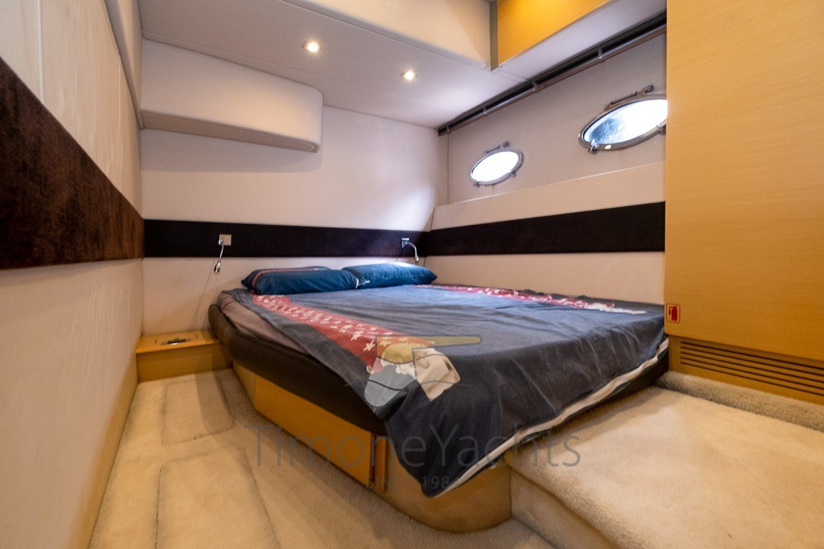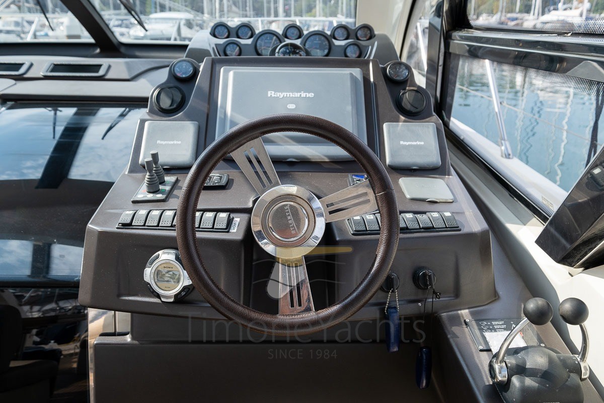 The Azimut Atlantis 54 HT is a thoroughbred sports open that masterfully blends high performance and timeless Italian design, distinguishing itself for its deep V hull capable of offering soft and precise navigation even in rough seas. This unit is equipped with the powerful and reliable Volvo Penta D12-800 engine of 800 hp each, a shaft line propulsion that ensures a maximum speed of about 34-35 knots and a comfortable and efficient cruise at 27 knots, making it ideal for medium and long-range crossings. The beating heart of livability is the generous cockpit protected by the electrically operated Hard Top, which transforms the living area into an en plein air saloon complete with wet-bar, large C-shaped dinette and a monumental aft sundeck, below which there is a practical garage for the tender. Below deck, the boat surprises with its volumes and finishes, offering a layout with 3 cabins and 2 bathrooms (owner's in the bow and two twin guests amidships) as well as a fully equipped galley and an internal dinette flooded with natural light. The technical profile is completed by high-level equipment such as the oversized generator, air conditioning in all rooms, the retractable hydraulic gangway and the bow thruster. An example that represents the perfect balance between the aggressiveness of an open and the comfort of a luxury yacht, maintained with high standards and ready to give pure emotions to its future owners.