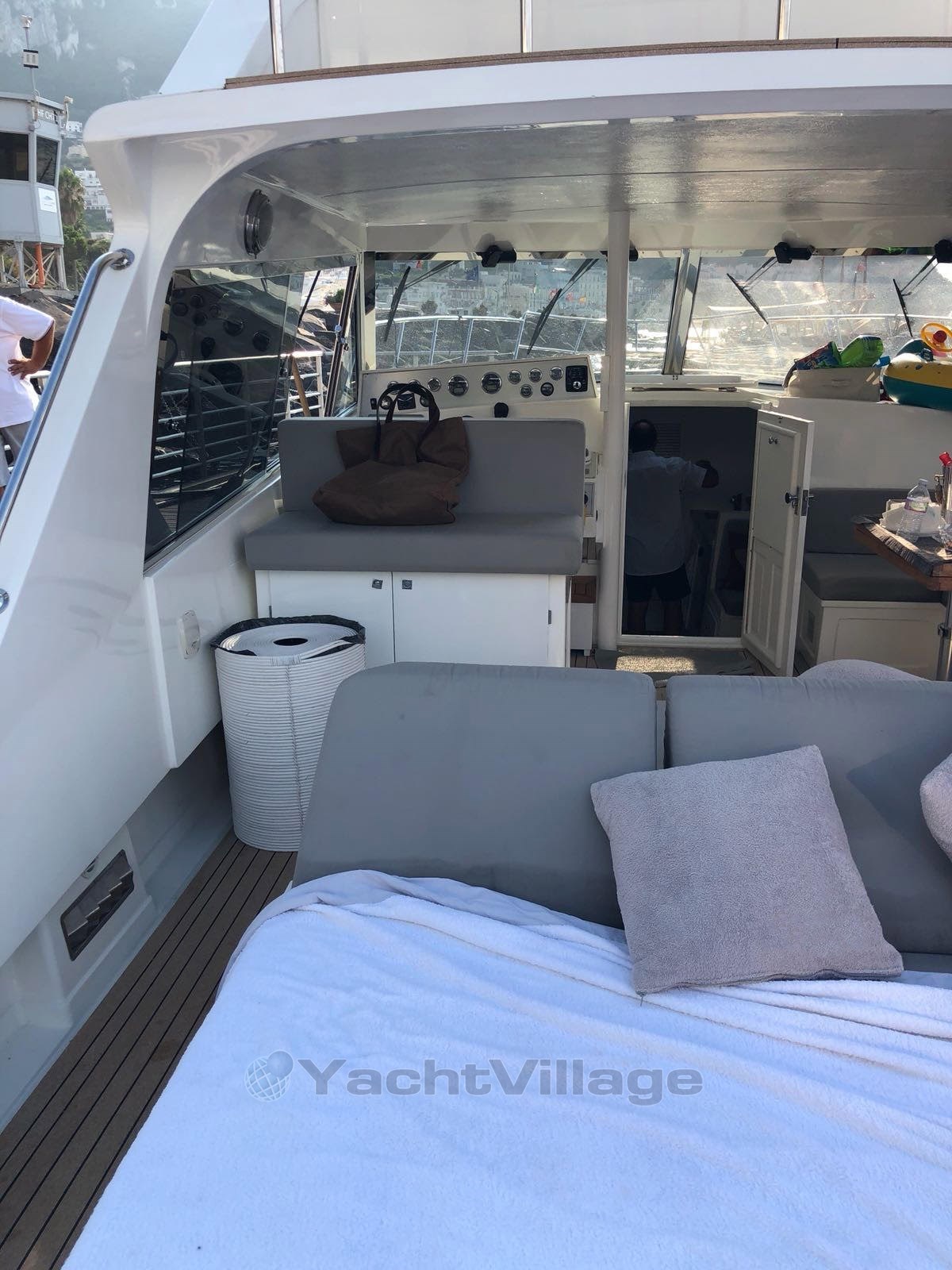 Electric bow thruster - Fisher Panda 6 kW generator set - air conditioning - TV antenna - LCD TV - Zipwake flap - fly fridge - electric two-burner hob - fridge - bow and stern sundeck - stereo - stern platform with swim ladder.