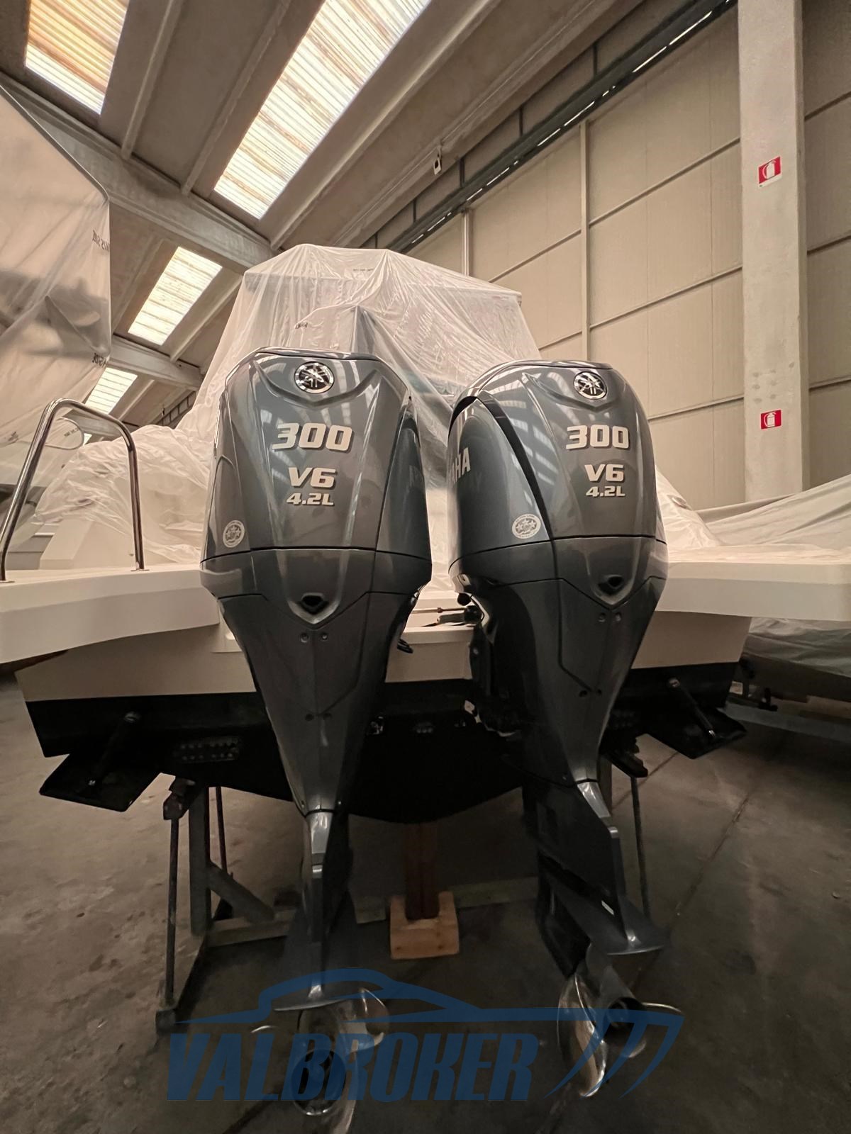 Sports walkaround visible in the Adriatic. Stored in the shed all winter. Motorized 2x300 HP Yamaha V6 4.2 L. VAT exposed.