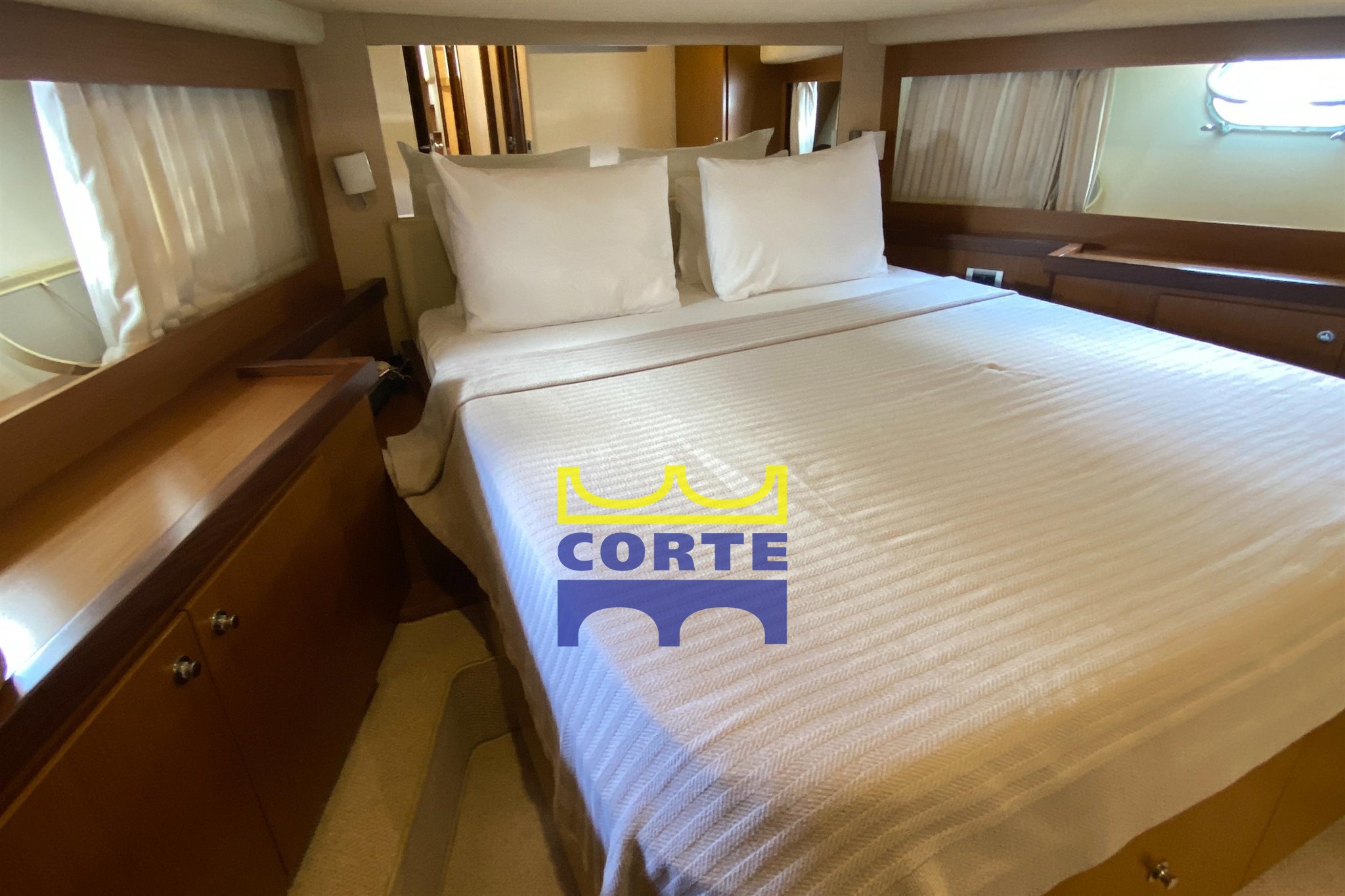 Double master cabin, with large windows.